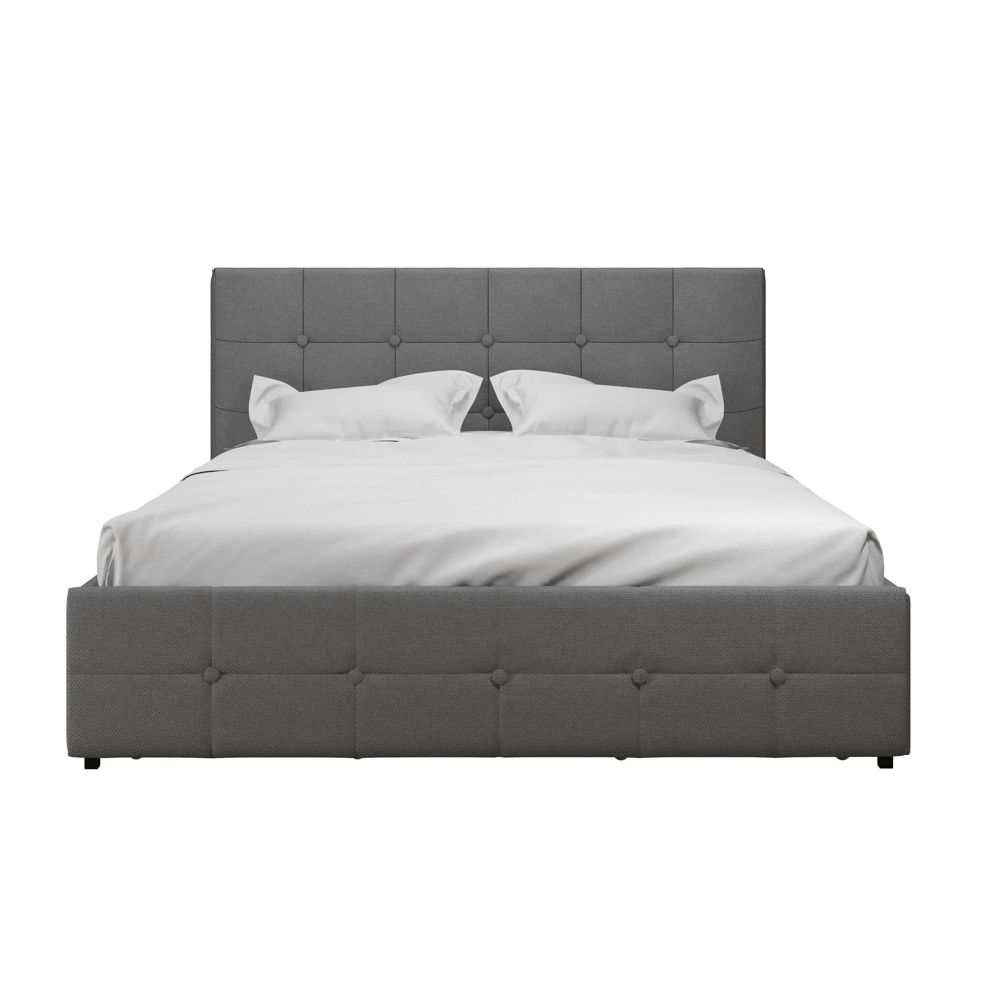 DHP Rose Tufted Upholstered Storage Bed Frame, Full, Gray Linen