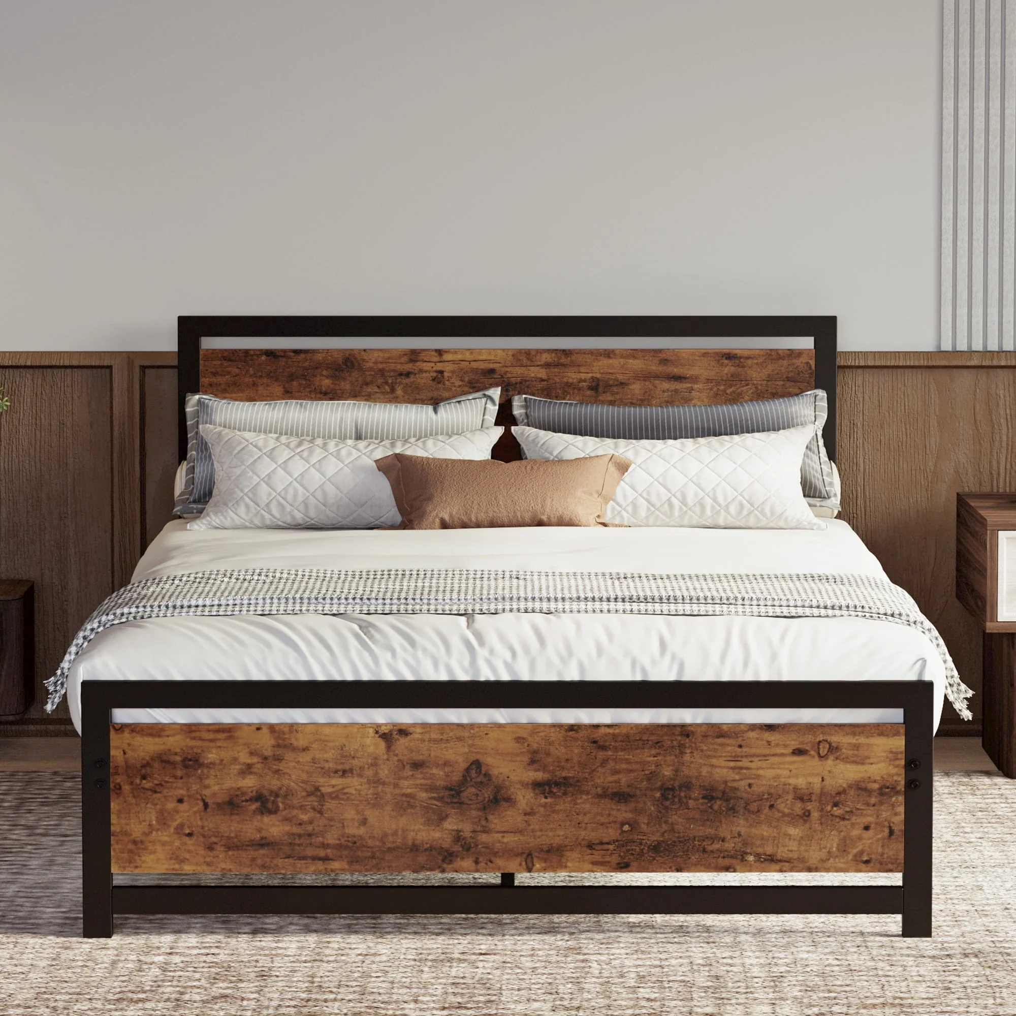 LIKIMIO Industrial Full Bed Frame with MDF Headboard, Strong Supports