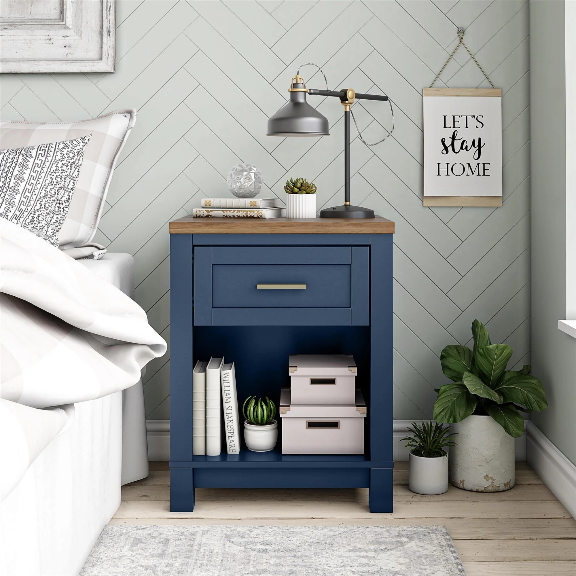 Ameriwood Home Josiah Nightstand, Navy with Walnut top