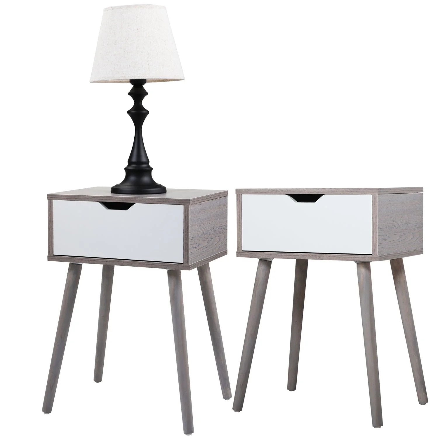 Sesslife Night Stand Set of 2, Solid Wood Legs Furniture Bedside Table, Modern End Side Table with a Drawer, Versatile Nightstand, Side Table for Home & Office, Gray+White