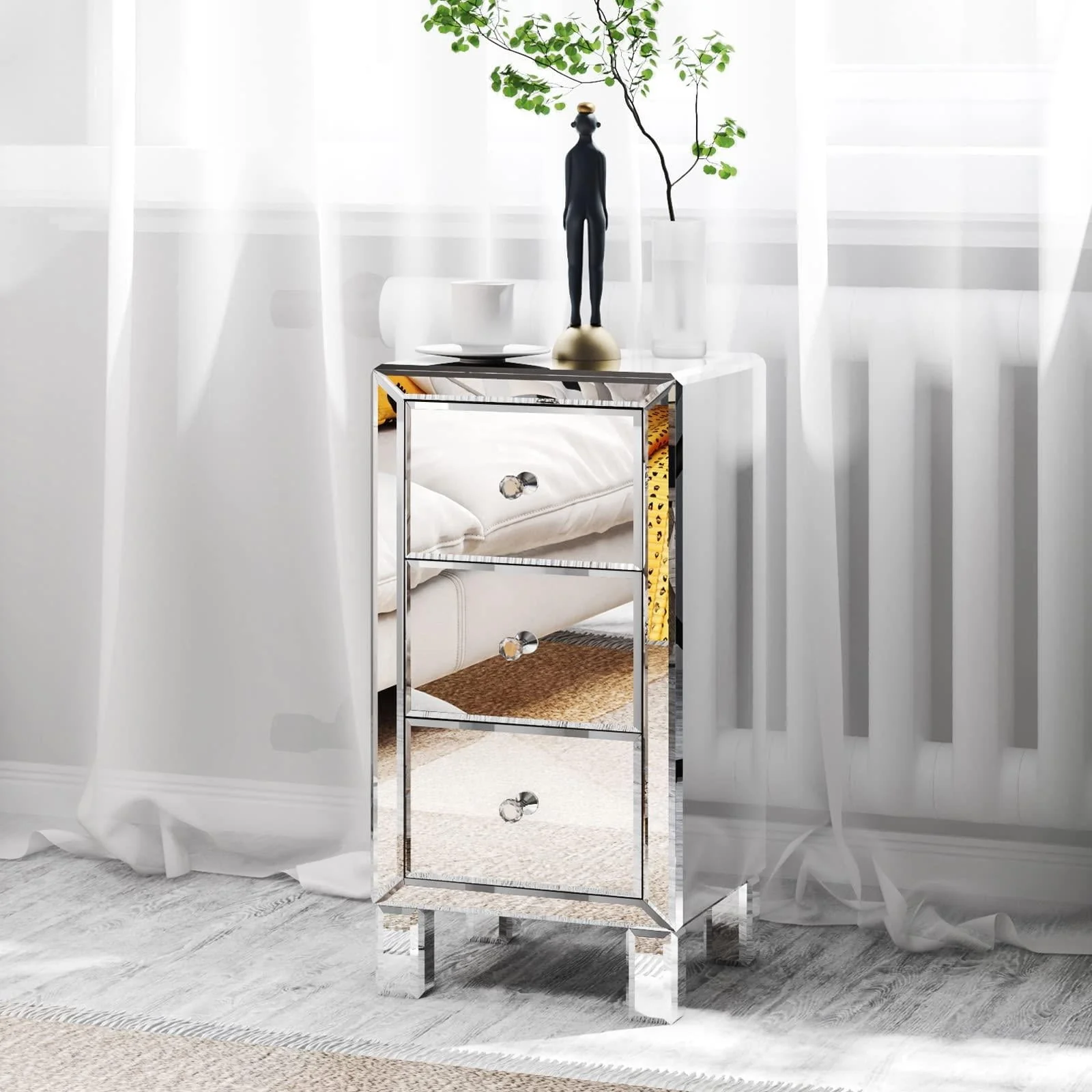 Zimtown Mirrored Glass 3-Drawers Nightstand Bedside Table Storage Bedroom