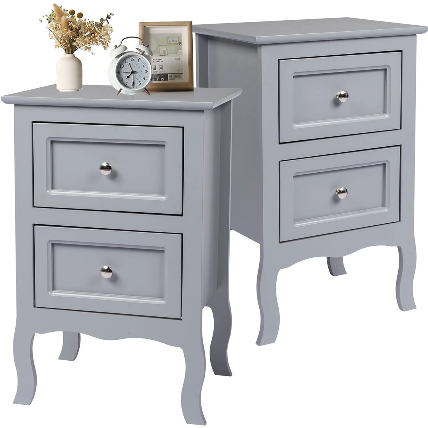 HSUNNS Set of 2 Nightstand Bedroom Bedside Table with Drawers Storage, Country Style Night End Table with Mental Handle, Suitable for Living Room Bedroom, Gray