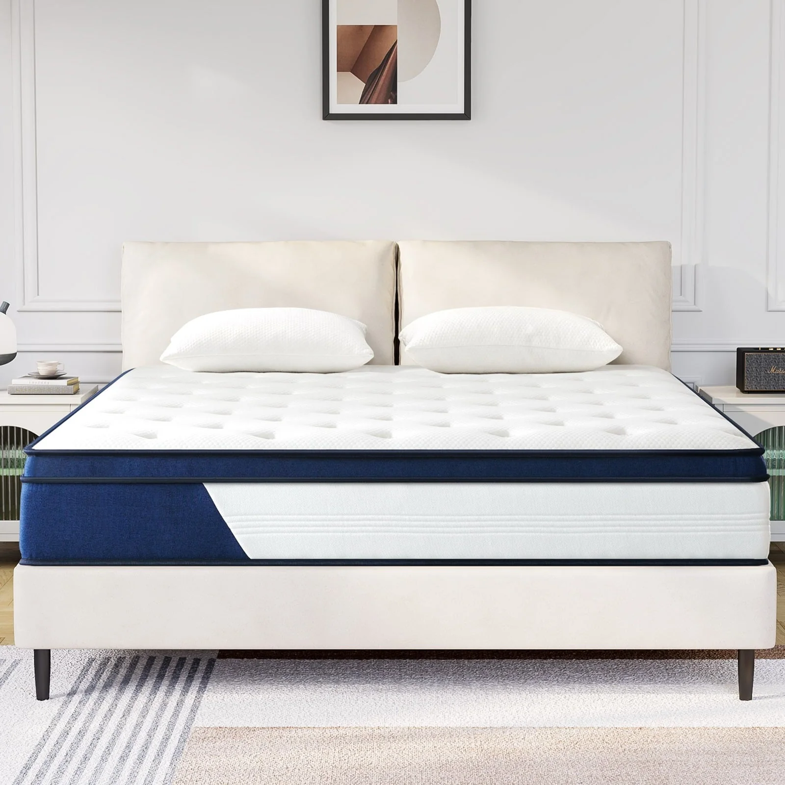 Queen Mattress 12" Madinog Medium Plush Innerspring Mattress Hybrid Pocket Spring Bed in a Box