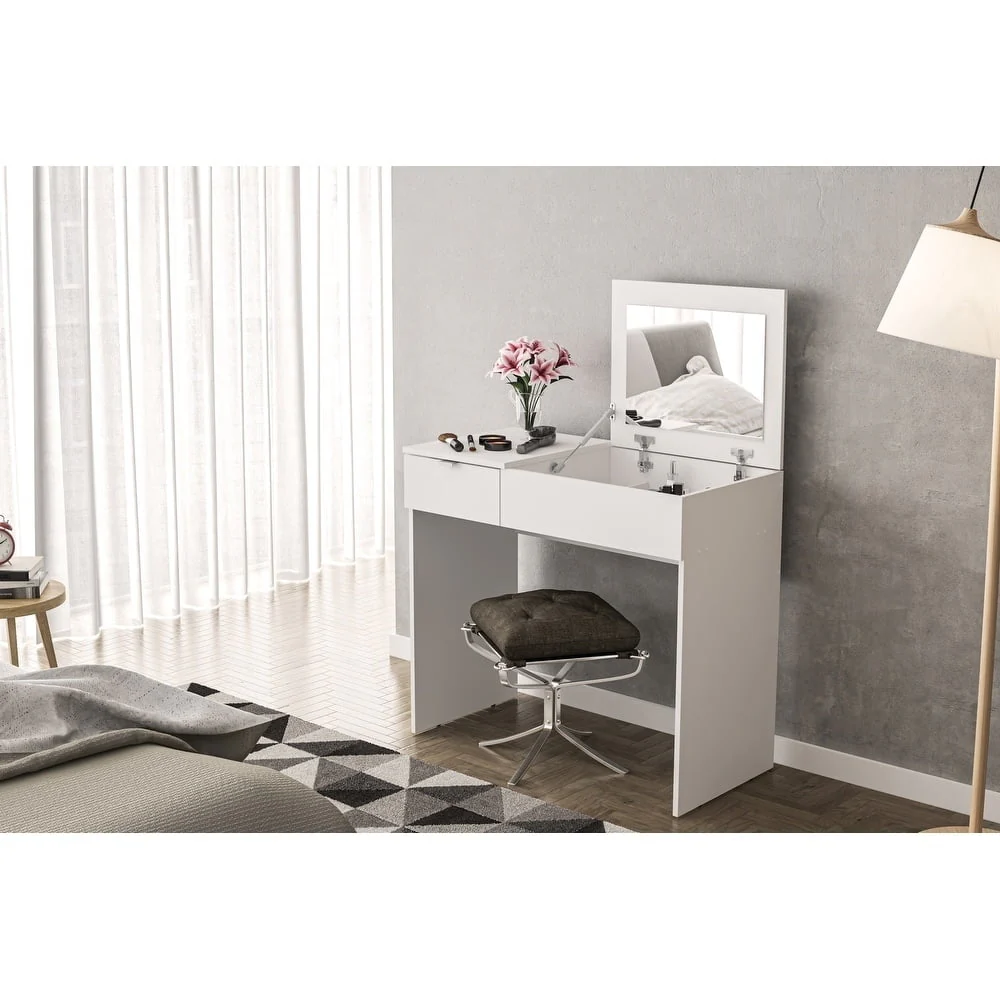 Polifurniture Modern Pull Top Vanity Table, White