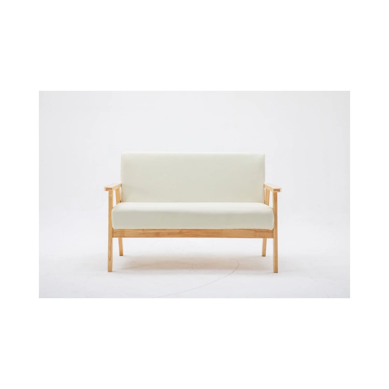 66.9" W Loveseat Sofa, Mid Century Modern Decor Love Seat Couches for Living Room, Polyester Upholstered Loveseats Furniture, Solid and Easy to Install Small Couch for Bedroom, White
