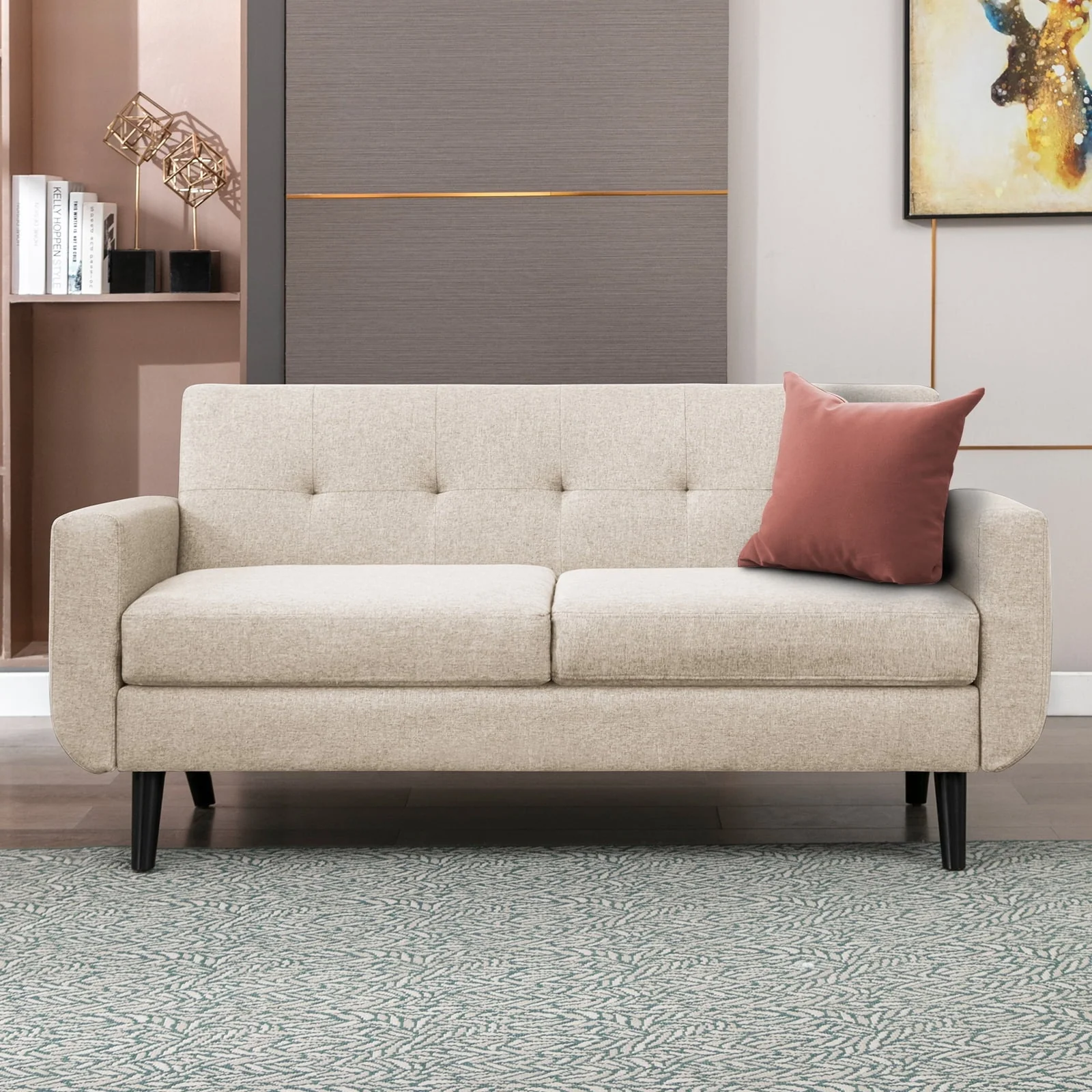 MUZZ 80" W Loveseat Sofa Couch, Mid-Century Modern Couch Love Seats Sofa for Living Room, Button Tufted Upholstered Small Couch for Bedroom, Apartment and Small Space, Easy Assembly, Beige