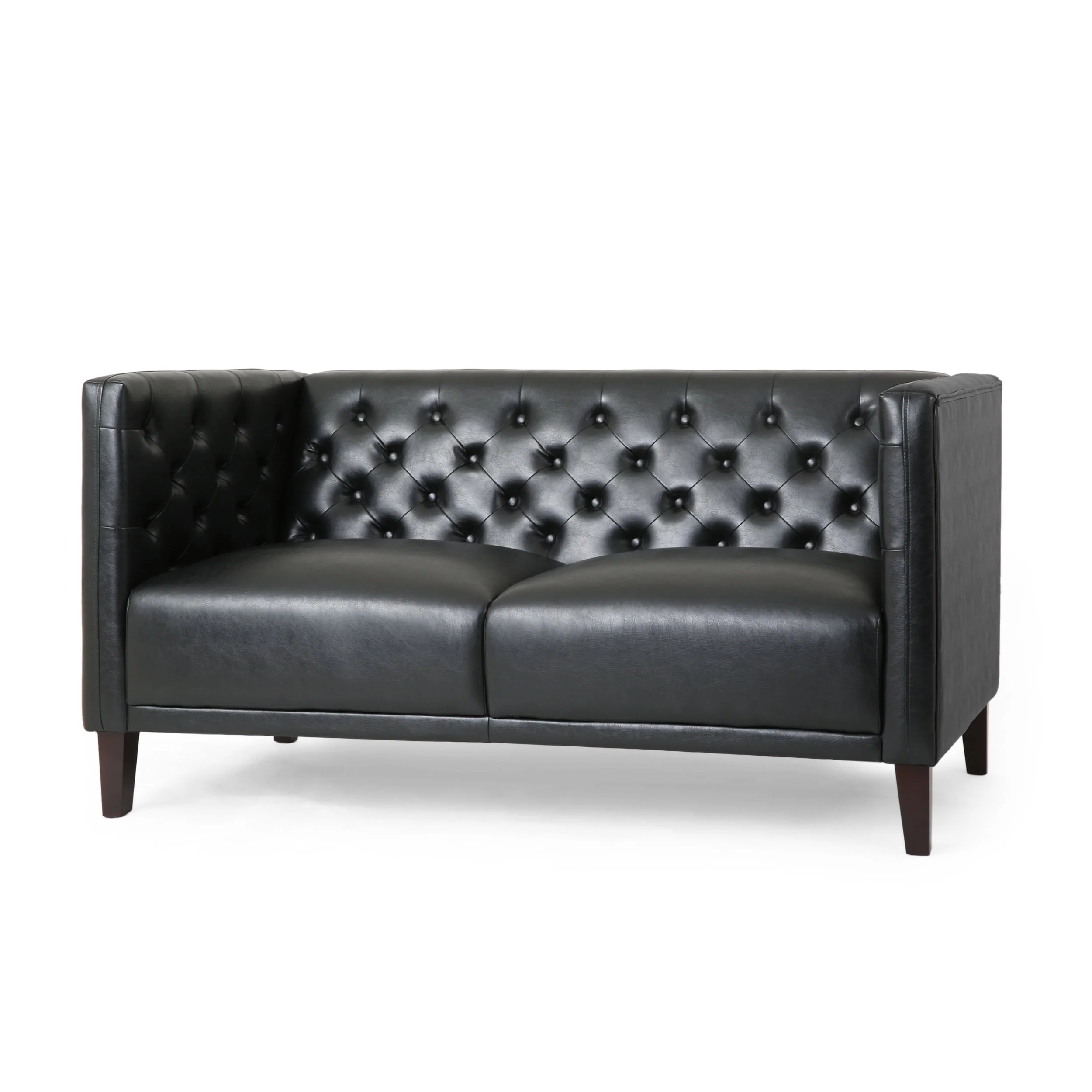 Noble House Kokesh Indoor Faux Leather Loveseat, Midnight Black and Brown
