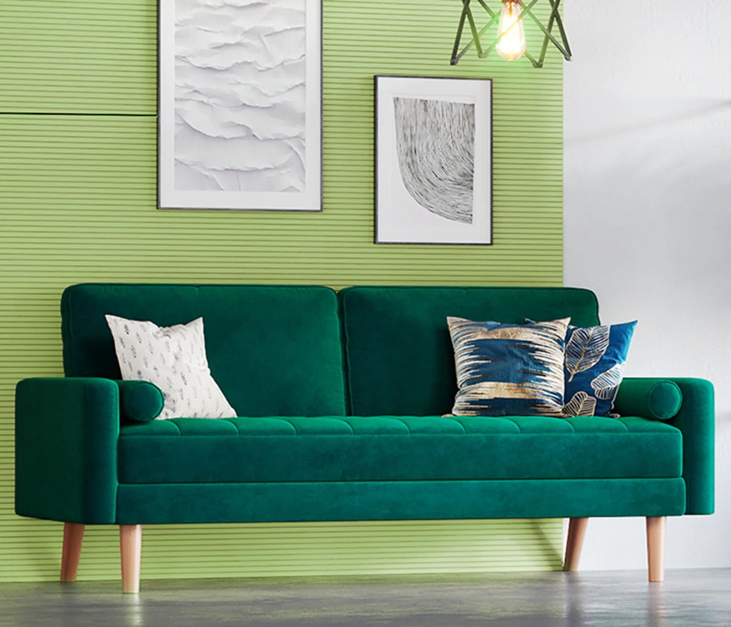 Vesgantti 70�?Velvet Sofa for Living Room,3 Seater Couch with with 2 Pillows Upholstered Loveseat,Green