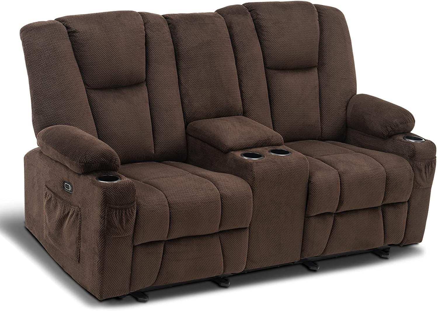 Mcombo Fabric Electric Power Loveseat Recliner w/ Console Massage Cup Holders USB for Living Room Brown 6045