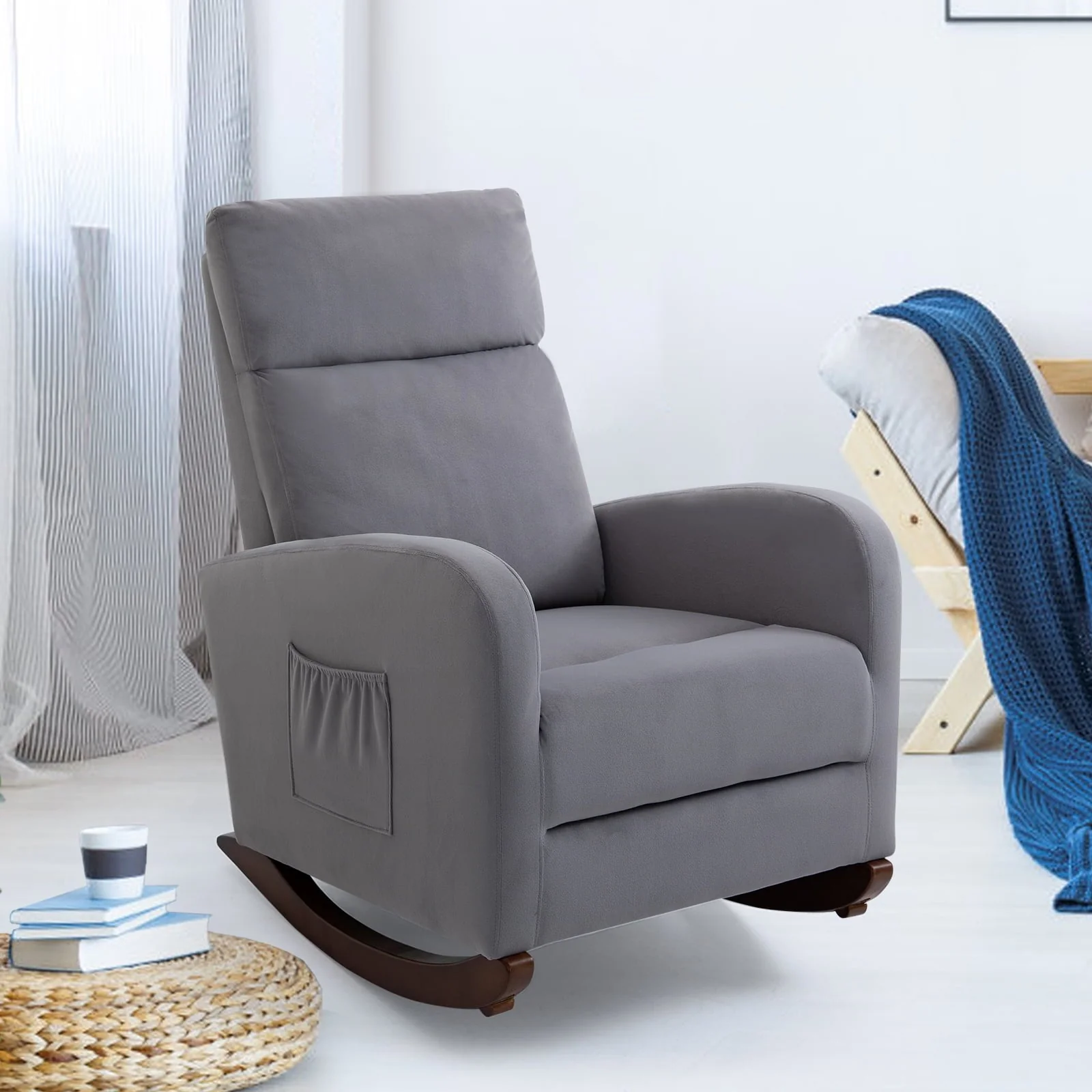 AVAWING Nursery Rocking Chairs Mid Century Glider Chair Upholstered Velvet High Back Arm Chair (Gray)