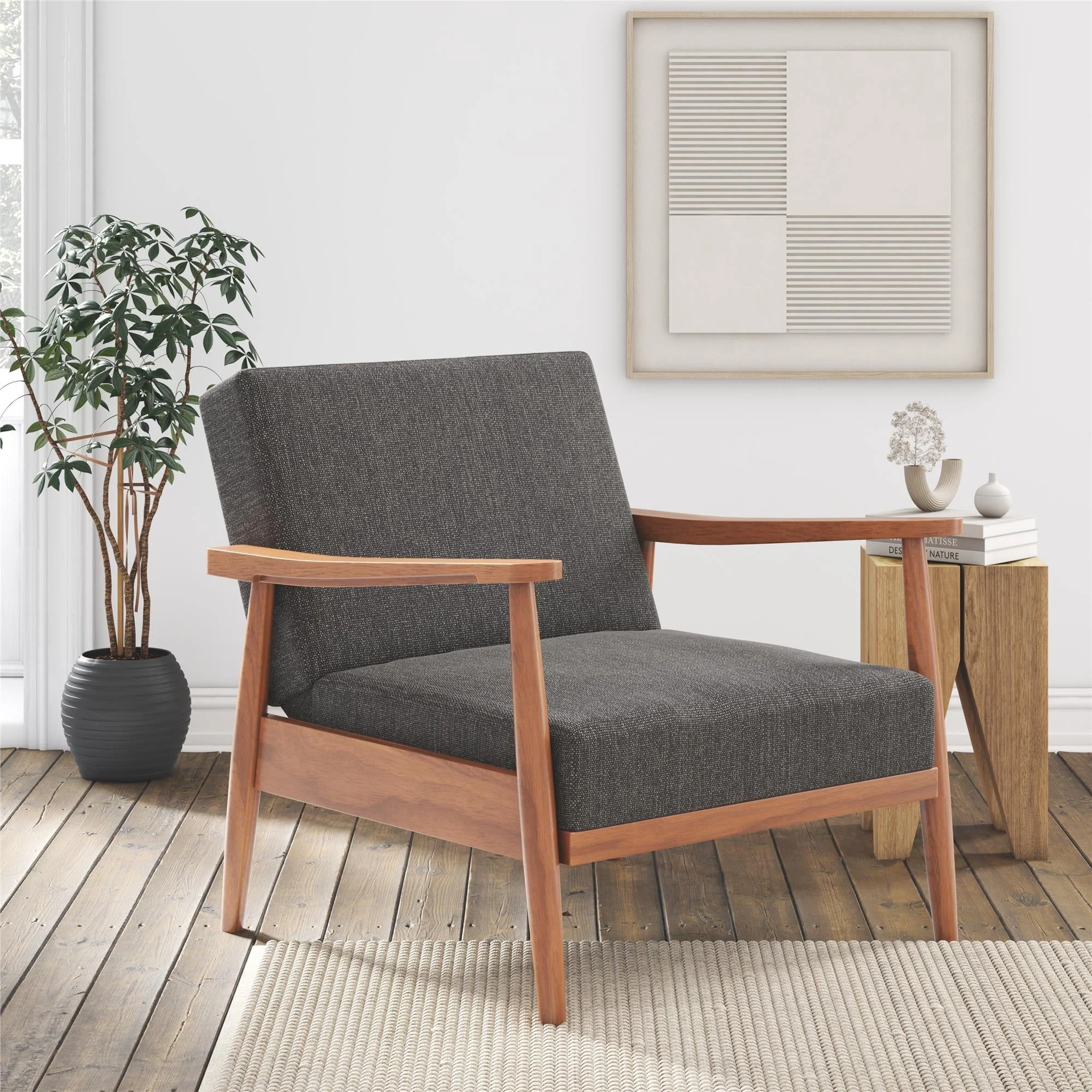 Ktaxon Mid Century Accent Chair, Wood Frame Armchair, Single sofa with Faux PU Leather Brown