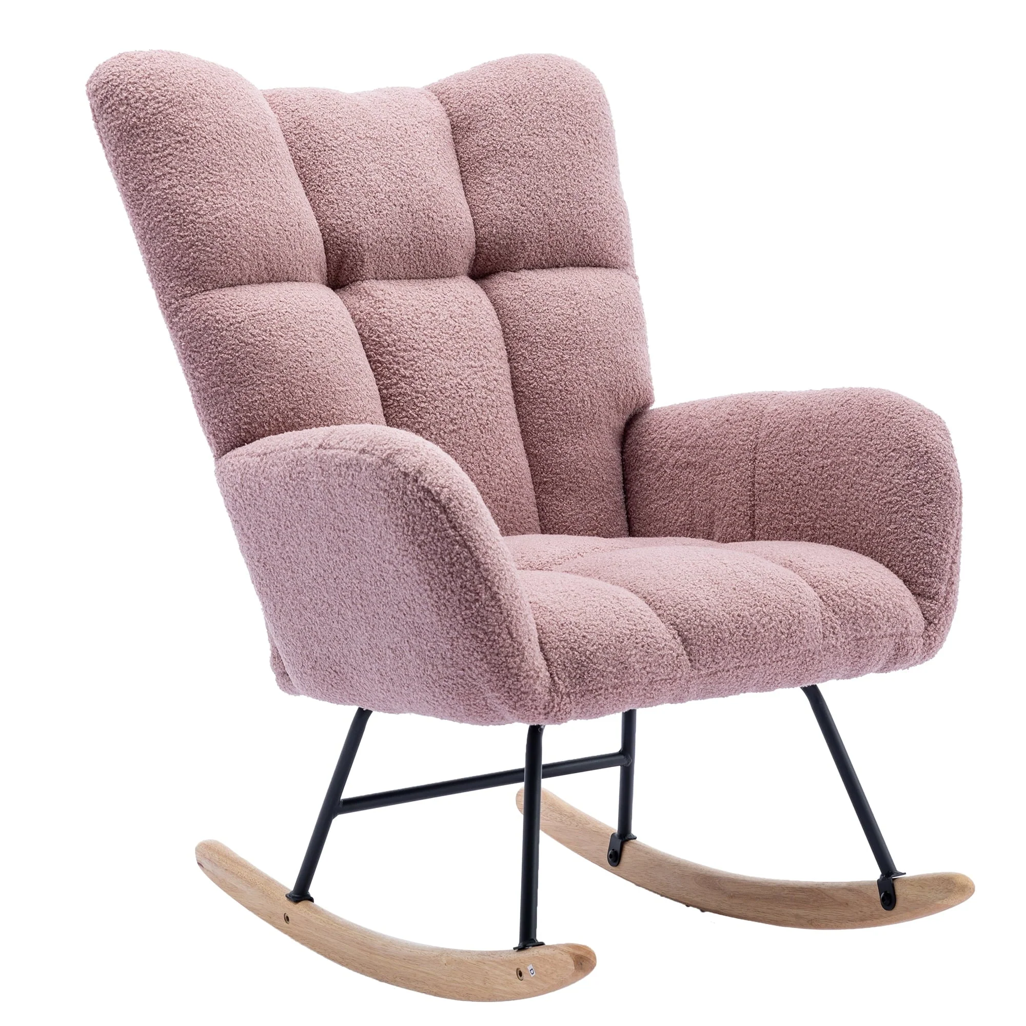 HONSIT Pink Nursery Rocking Chair, Teddy Fabric Upholstered Glider Rocker with High Backrest, Modern Rocking Accent Chairs Comfy Side Chair for Nursery, Bedroom, Living Room
