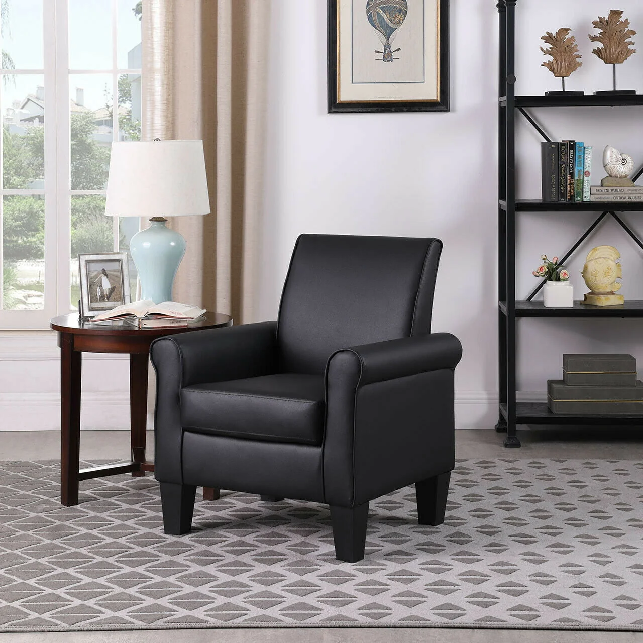 Lohoms Modern Faux Leather Accent Chair Uplostered Living Room Arm Chairs Comfy Single Sofa Chair (Black)