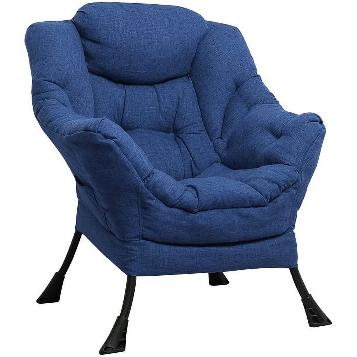 MEETWARM Modern Cotton Fabric Lazy Chair, Accent Contemporary Lounge Chair, Upholstered Single Leisure Sofa Chair with a Side Pocket, Armrests and Thick Padded Back for Living Room Bedroom (Blue)