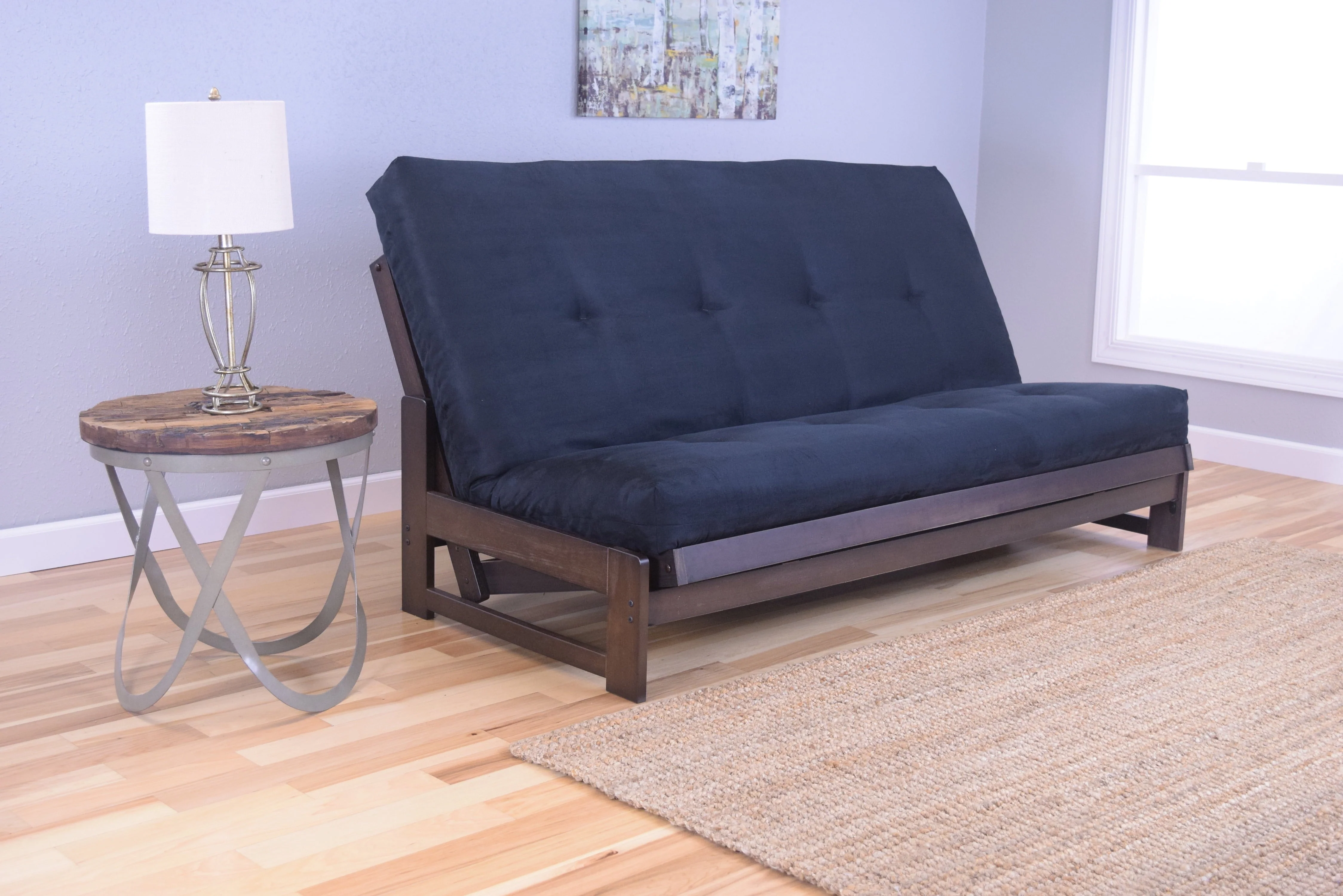 Aspen Futon in Reclaimed Mocha Finish, Multiple Suede Colors