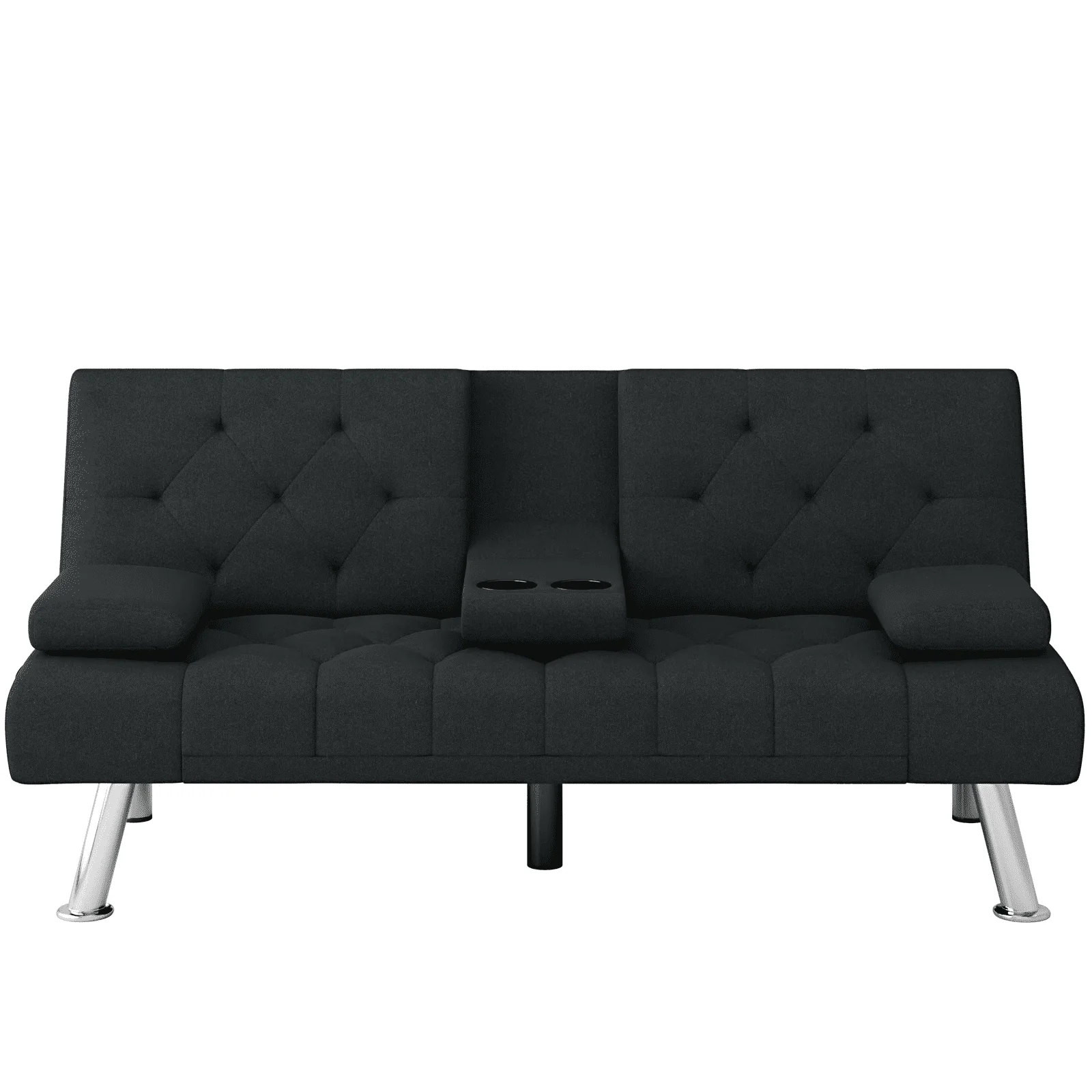 Homfa 66.3'' Upholstered Sofa Bed Couch, Convertible Futon Folding Sleeper Sofa with Removable Armrests and 2 Cupholders for Living Room, Black