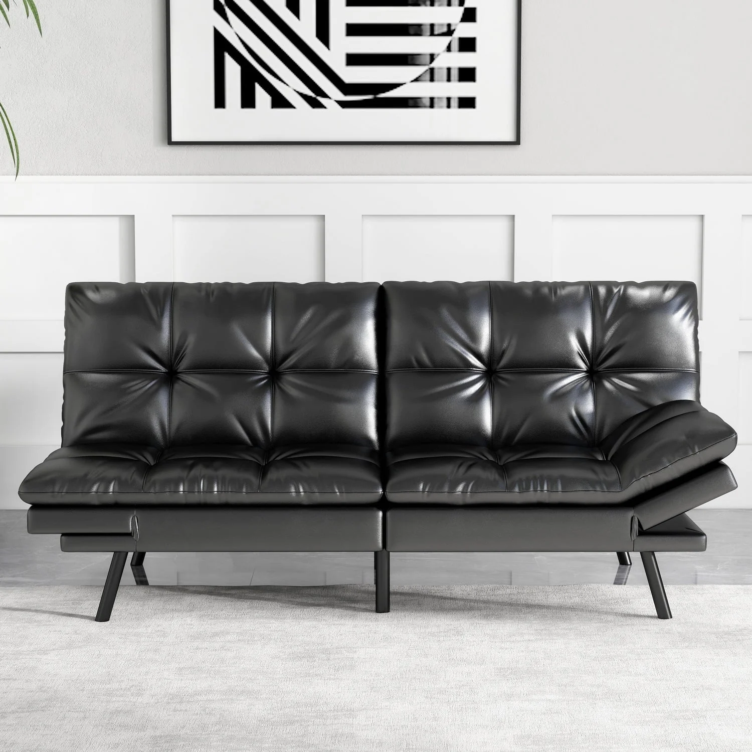 Smiaoer Futon Sofa Convertible Couch Memory Foam Sofa Bed,Black