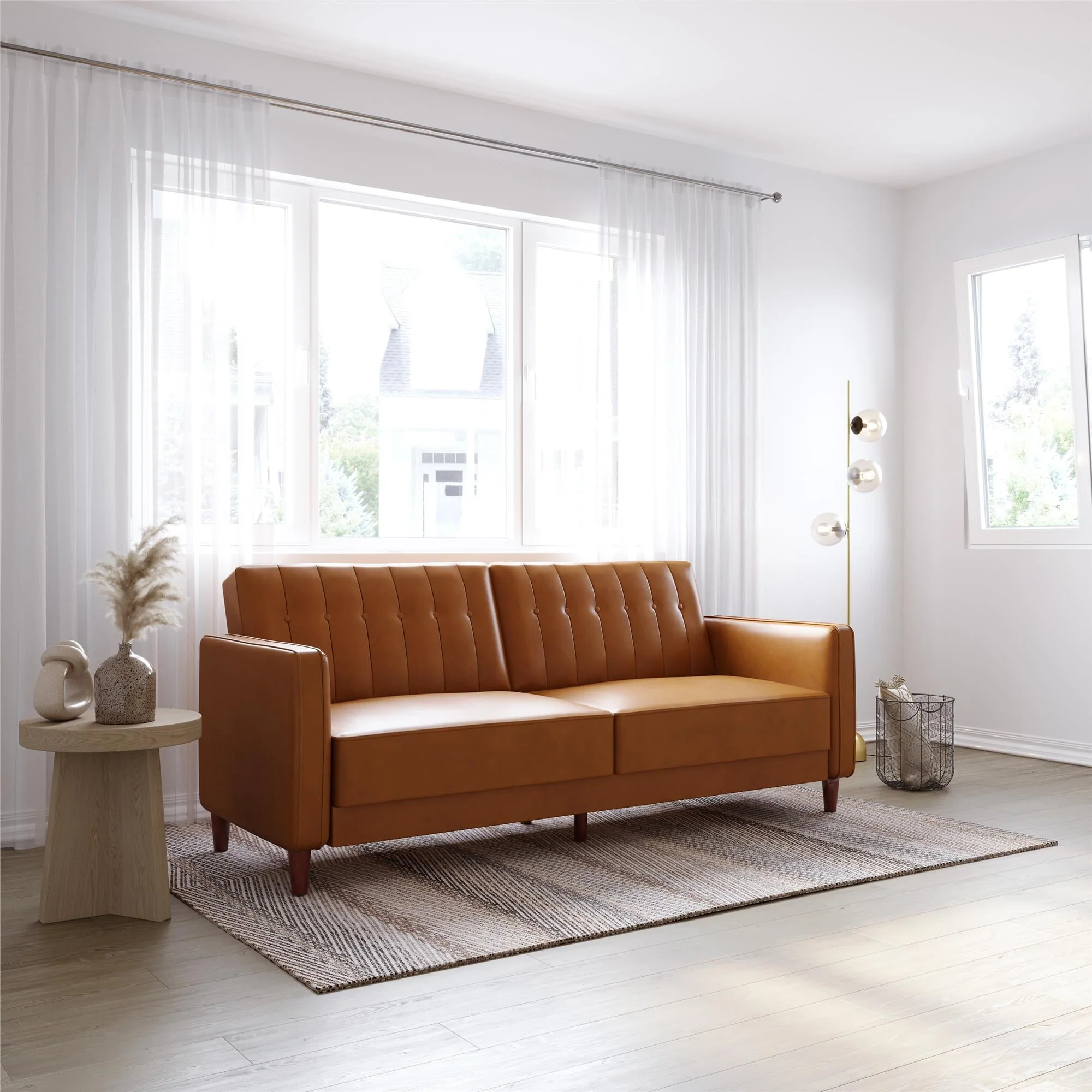 DHP Pin Tufted Transitional Futon and Sofa Bed, Camel Faux Leather