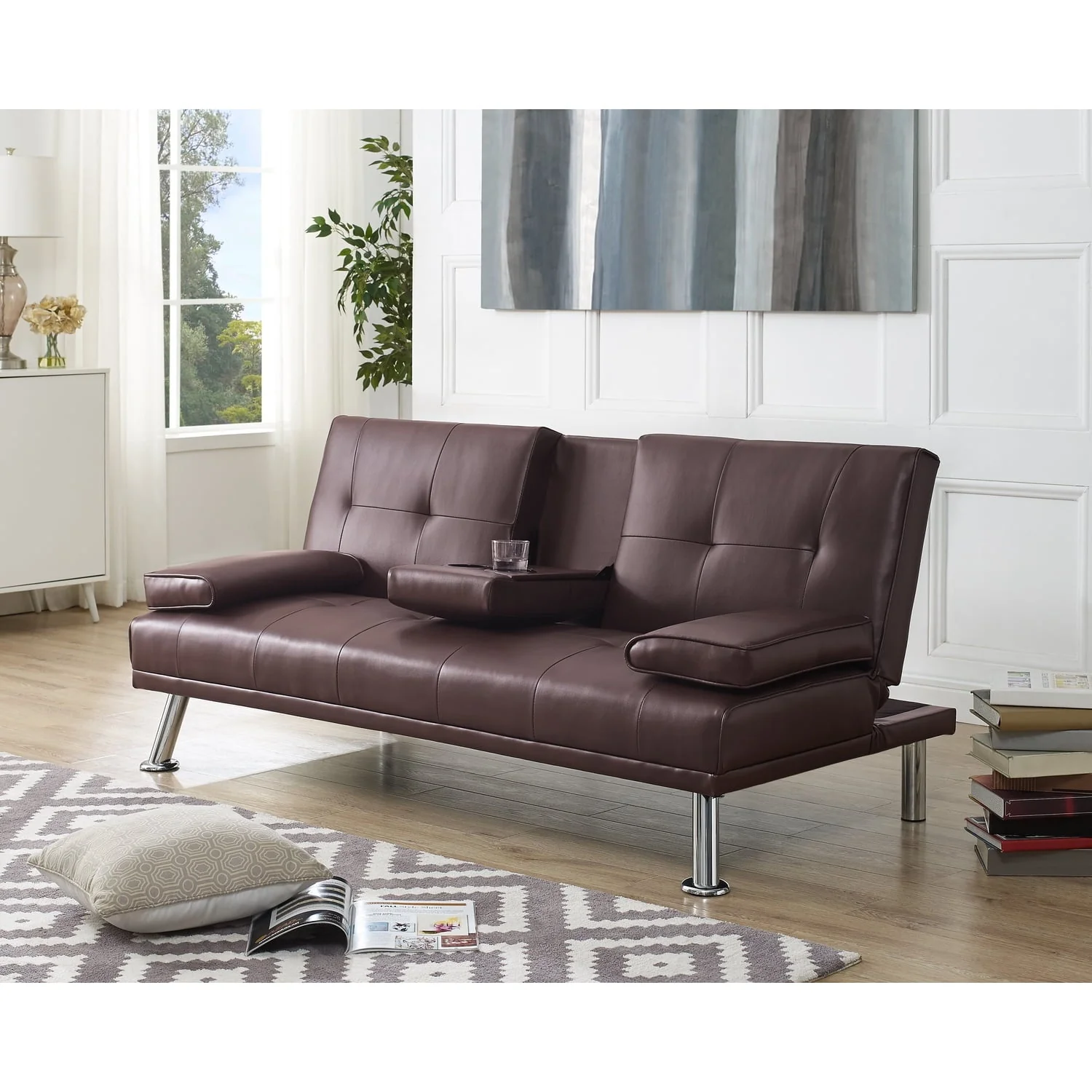 Futon Sofa with Armrest and Cupholders by Naomi Home-Color:Espresso