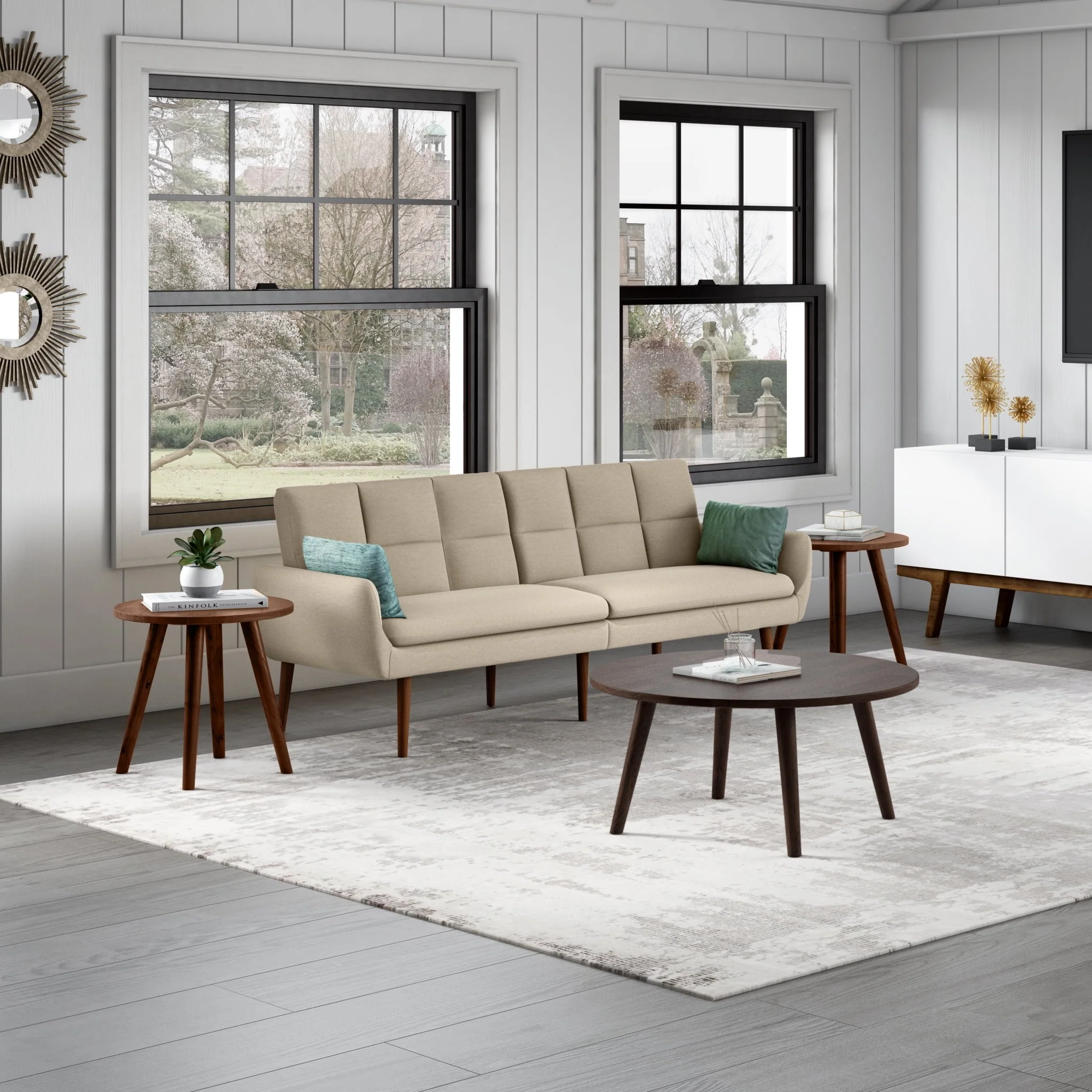 Modstyle 76" Fabric Futon Sofa Bed with Adjustable Backrest & Cup Holder, Beige