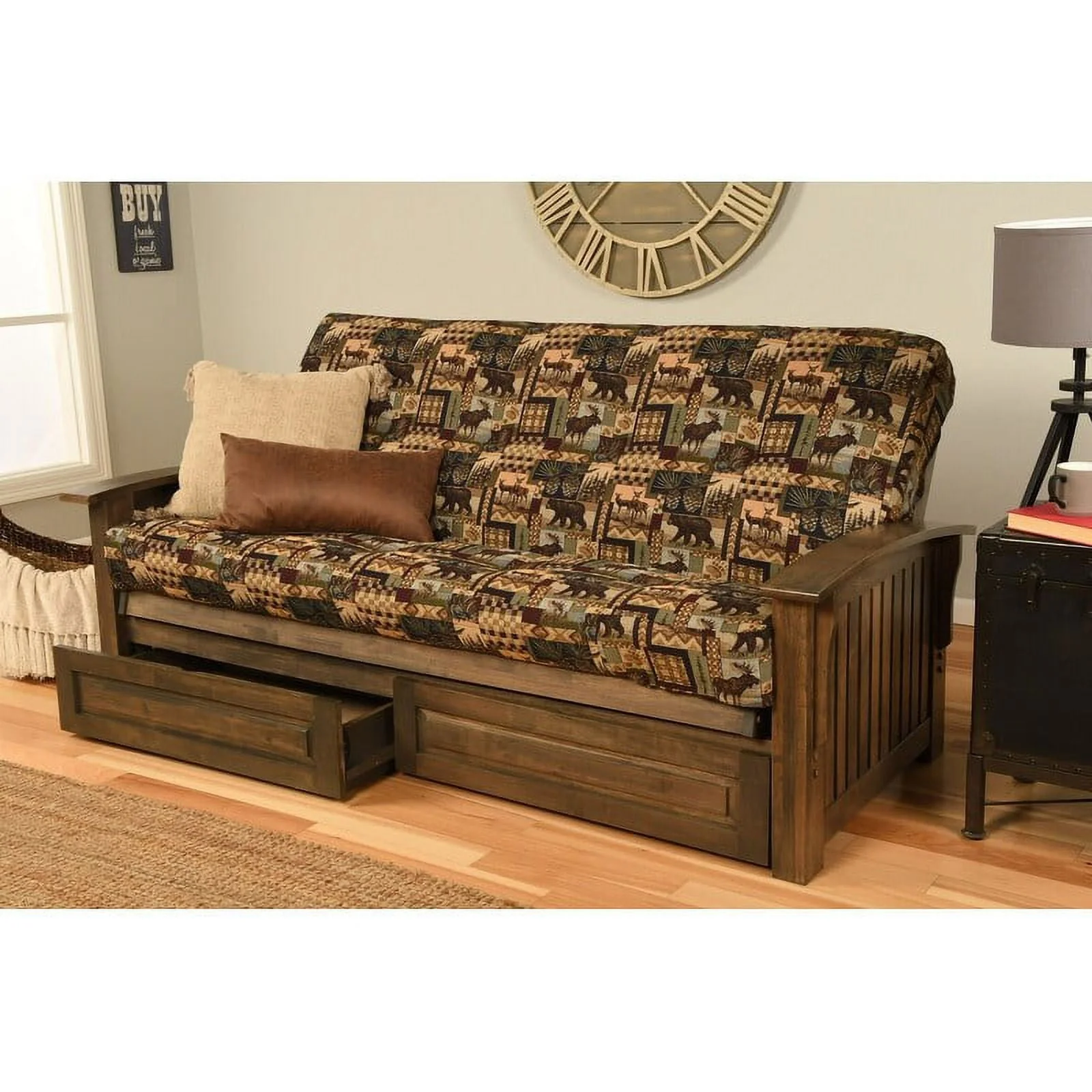 Copper Grove Cayenne Rustic Walnut Storage Futon Set with Mattress peter's cabin