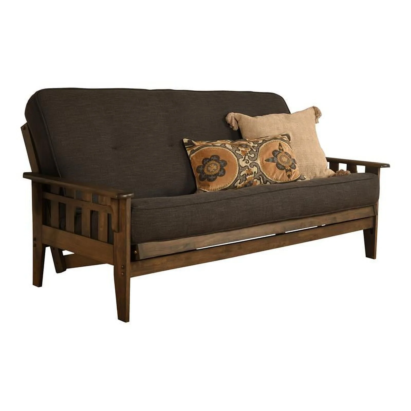 Pemberly Row Frame with Linen Fabric Mattress in Charcoal Gray and Walnut