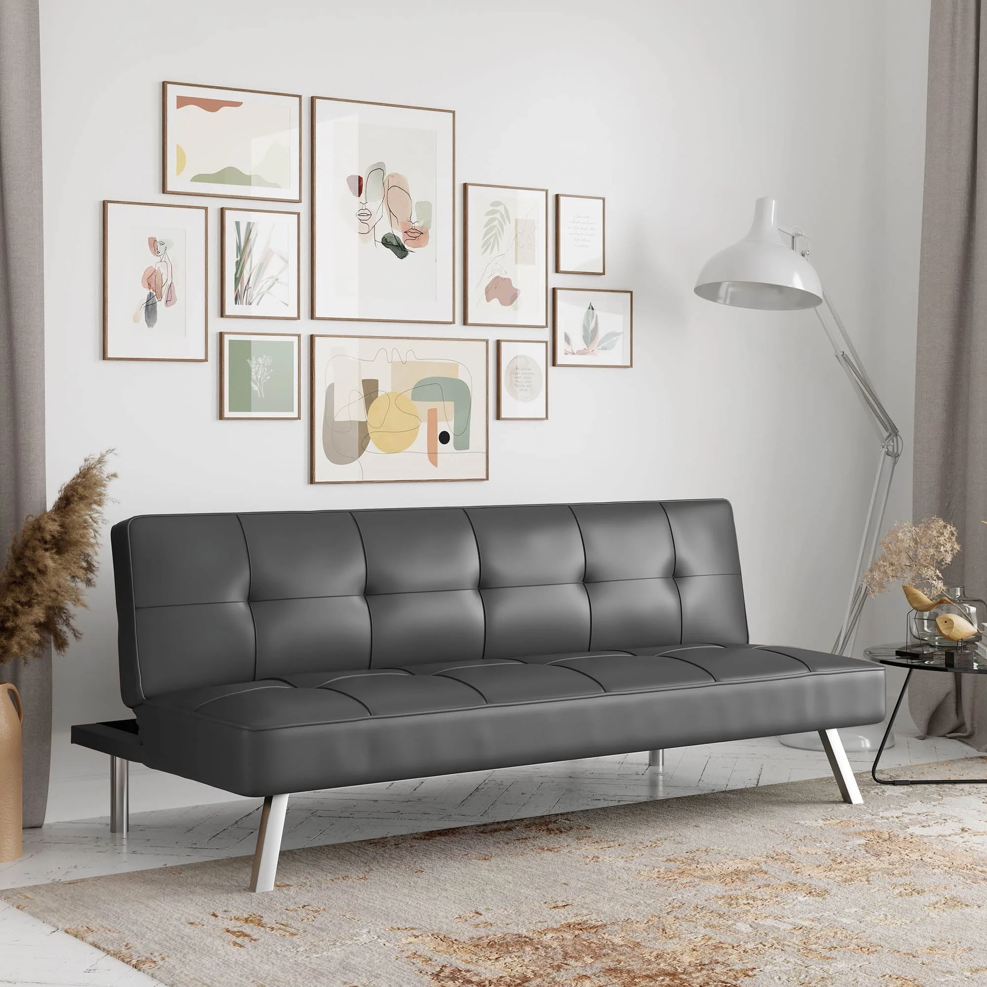 Serta Chelsea Modern Futon, Dark Grey Faux Leather