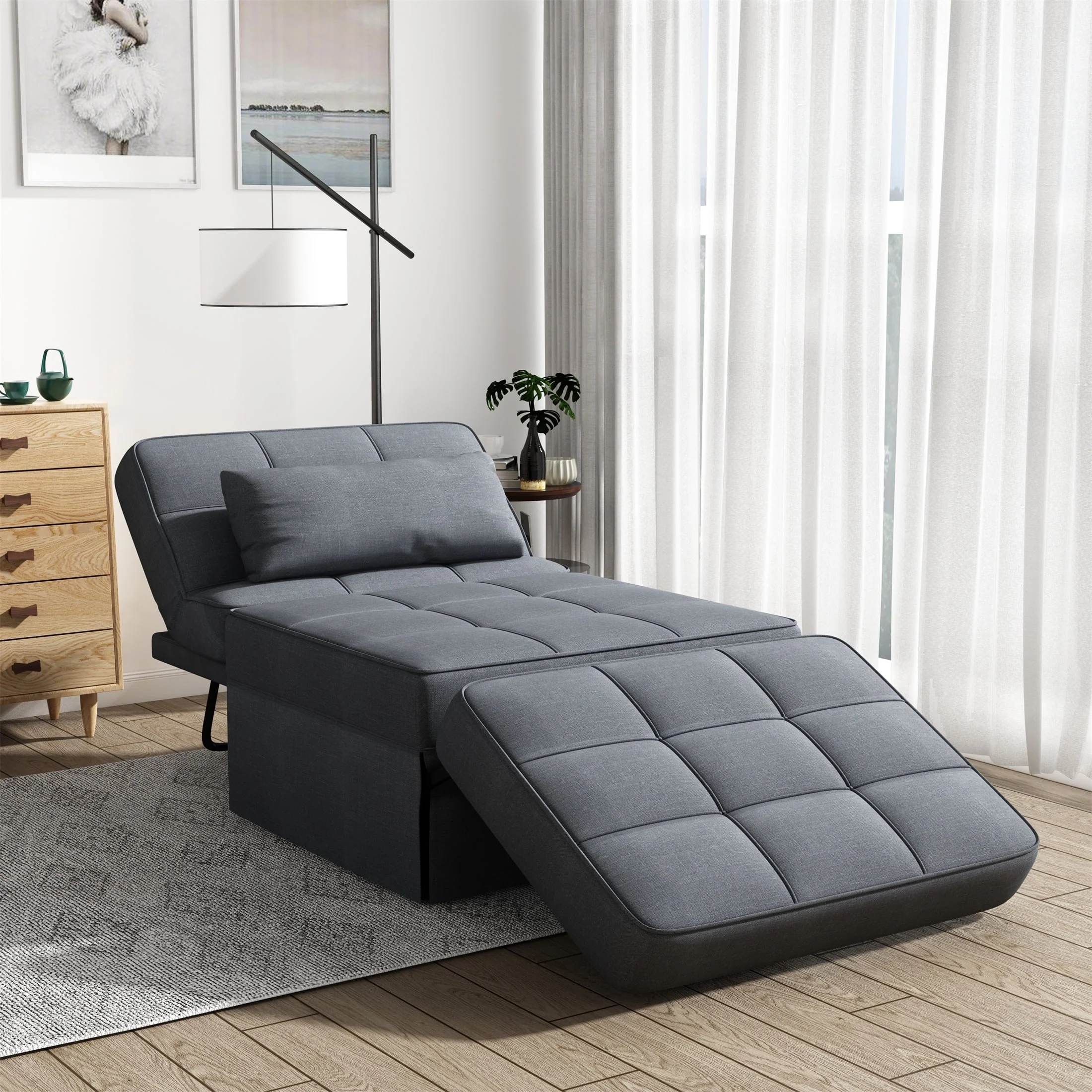 Aukfa 36" Wide Folding Chaise Futon Convertible Sofa Bed, Ottoman, Adjustable Backrest, Linen, Gray