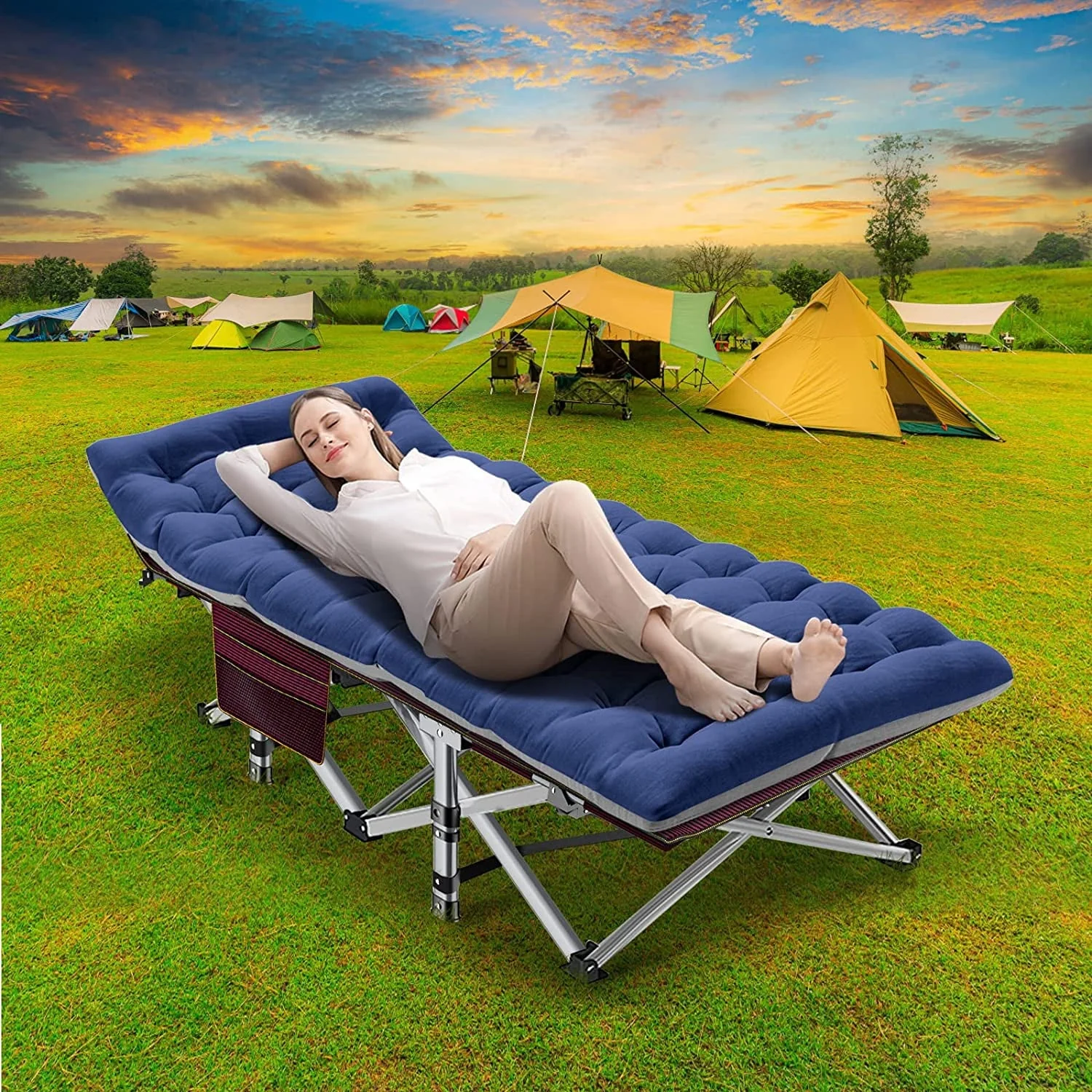 Slsy Cot, Folding Camping Cots for Adults, 75"L x 28"W Sleeping Cots, Portable Foldable Guest Beds Cot with 2-Sided Mattress & Carry Bag
