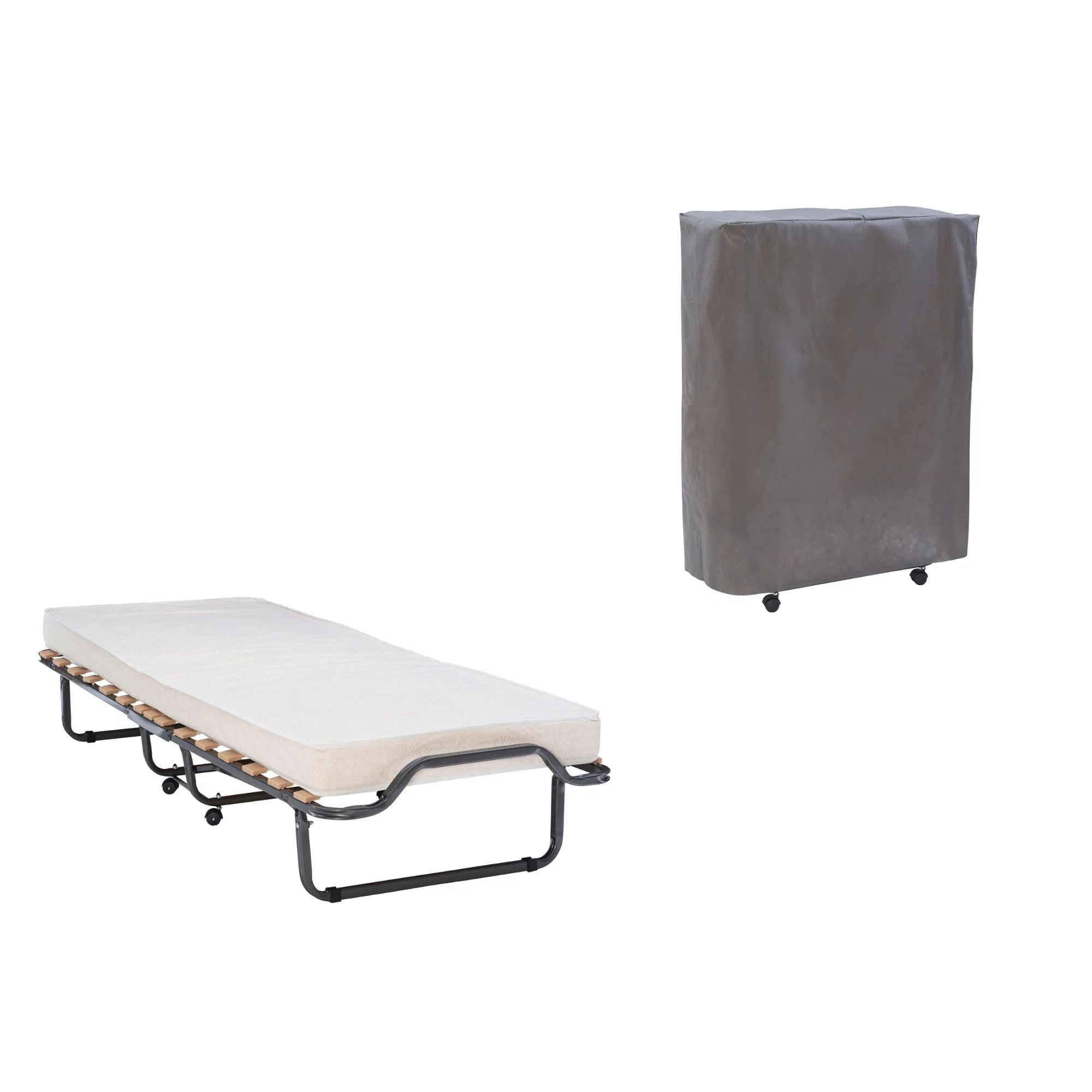 Folding Rollaway Bed, Metal Frame Bed Storage Cover Included, Portable Foldable Guest Bed for Adults, Cot Size Fold up Bed with Memory Foam Mattress on Wheels 76.5" x 31.5" x 16"