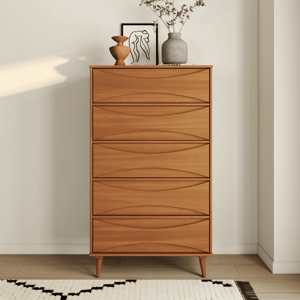Walker Edison 30�?Mid-Century Modern Curved Front 5-Drawer Dresser, Caramel