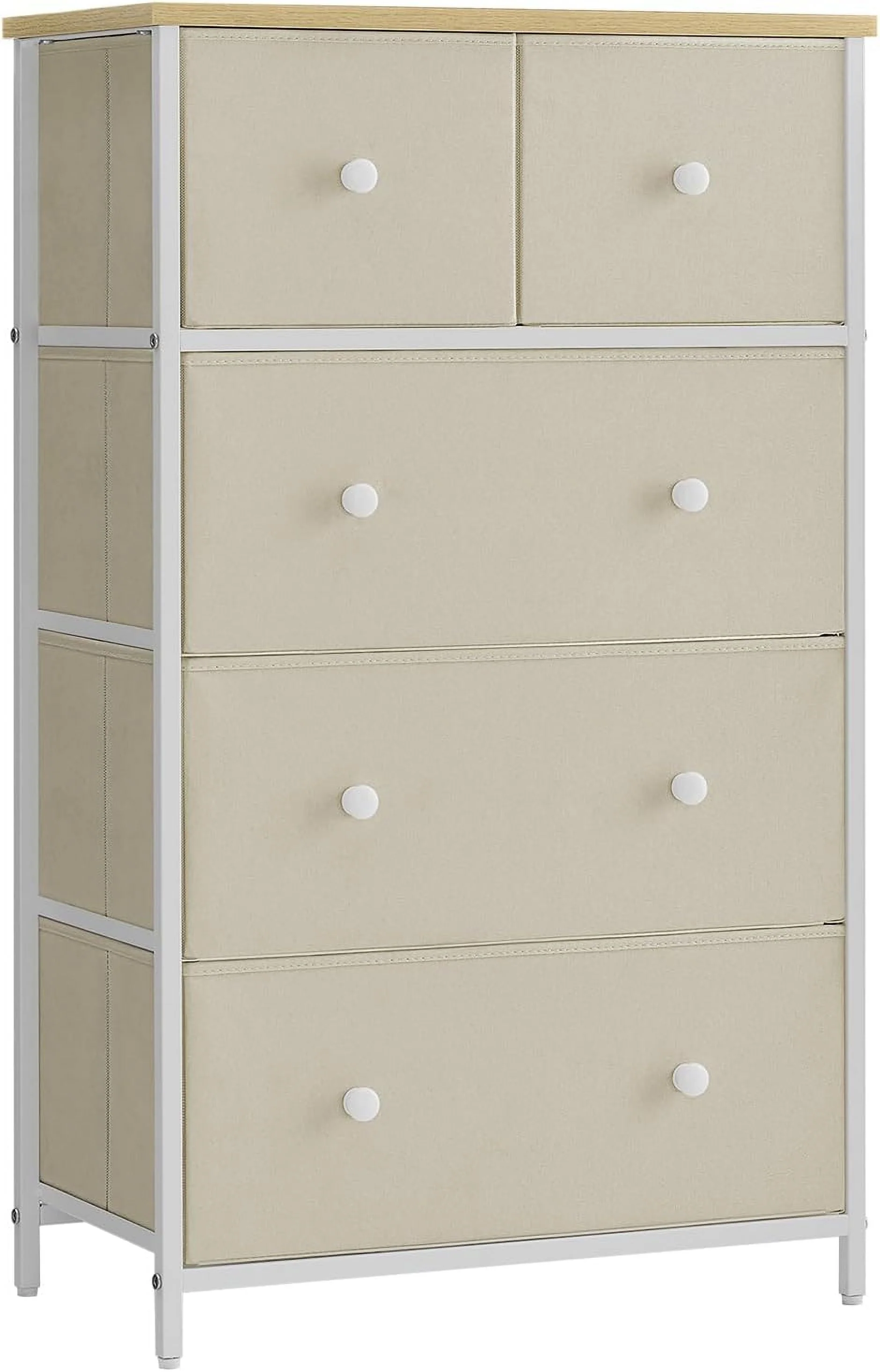 SONGMICS 5 Fabric Drawers Dresser Storage Tower with Unit for-Living-Room Hallway-Nursery Camel Yellow + Cream White