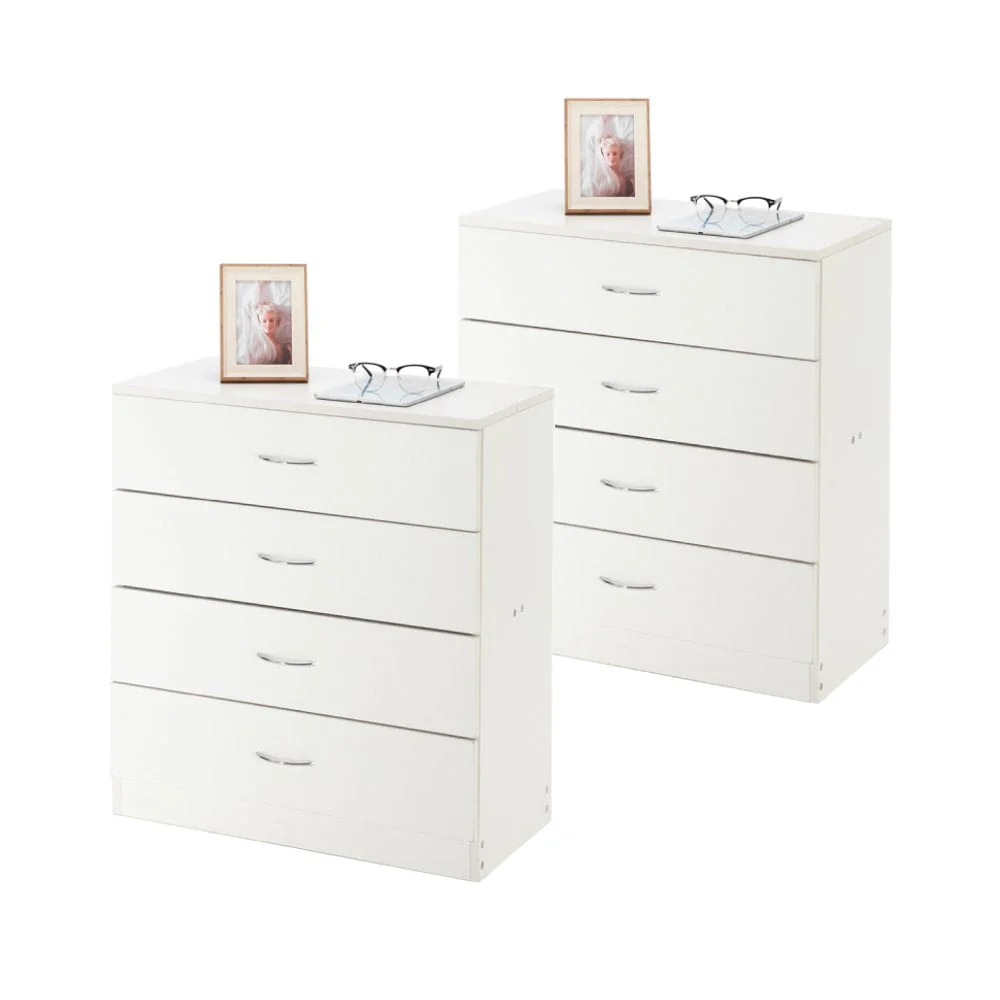 GeDecor 2pc 4 Drawer White Dresser, Wood Chest of Drawers Storage Cabinet Clothing Organizer Unisex