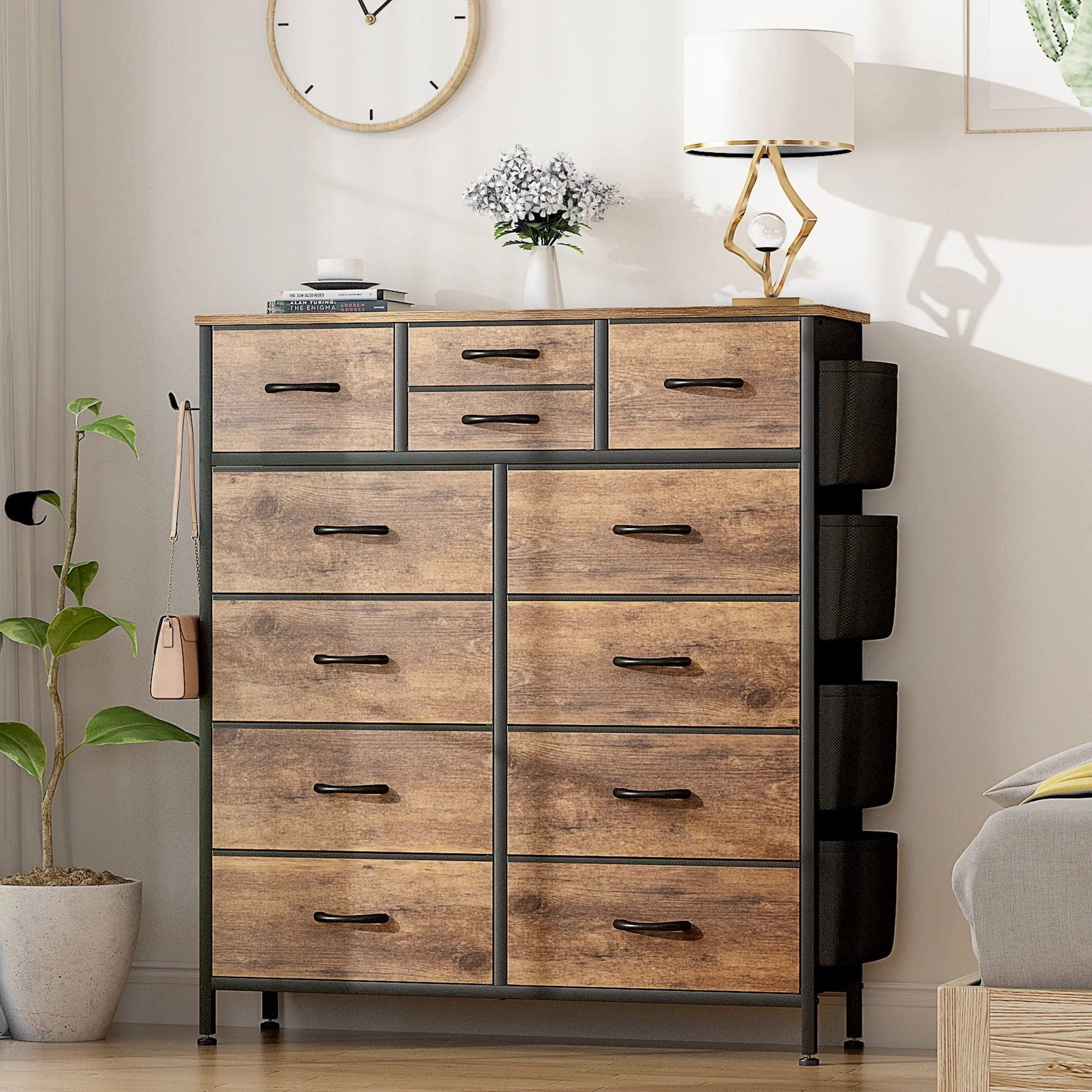 GIKPAL Dresser for Bedroom with 12 Drawer Tall Dresser Chest of Drawers Fabric Dressers Storage for Closet Living Room Hallway, Rustic Brown