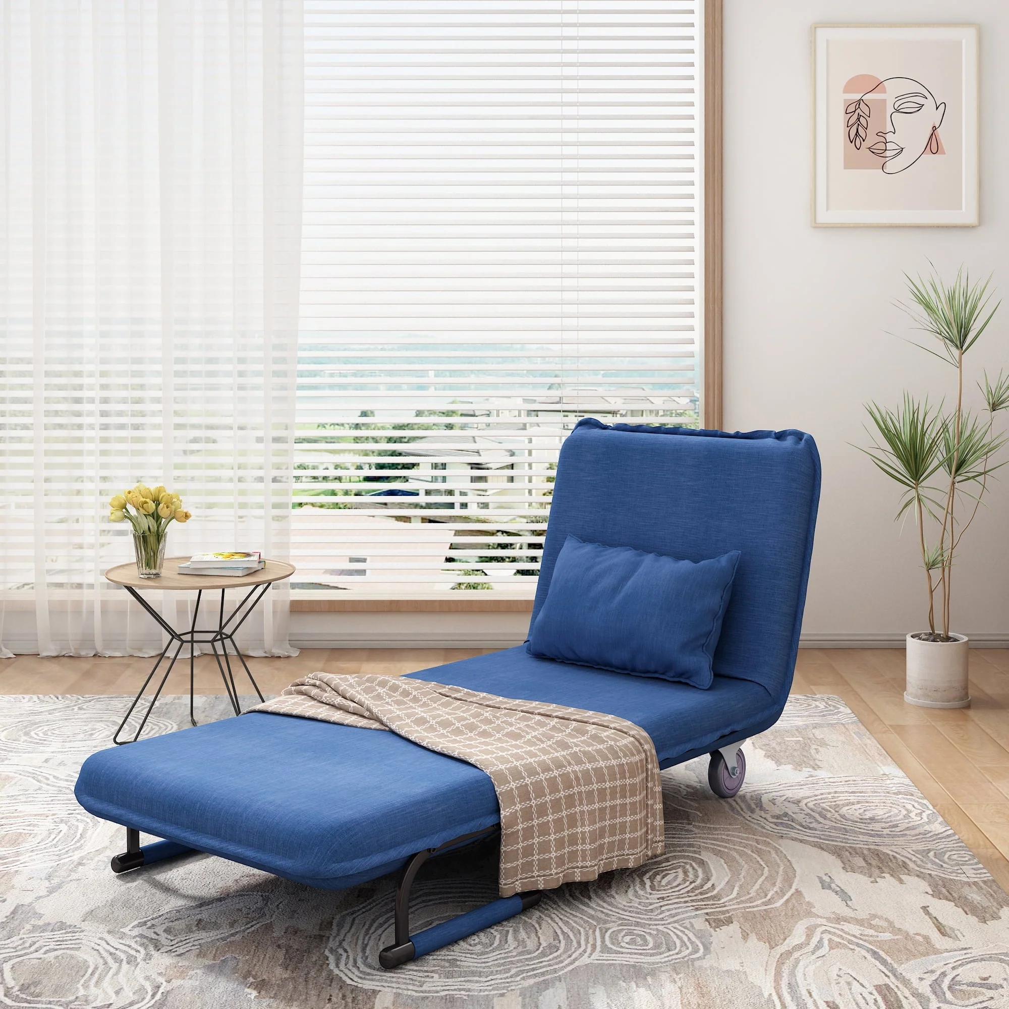Jaxpety 29.5" Width Fabric Folding Chaise Lounge Sofa Chair Couch with Armrest and Pillow Blue
