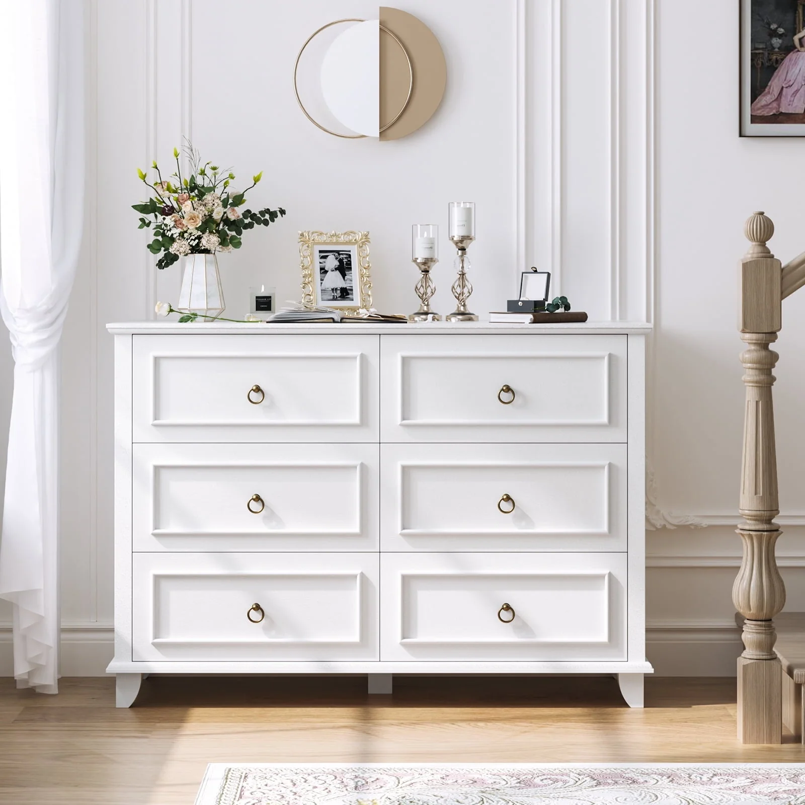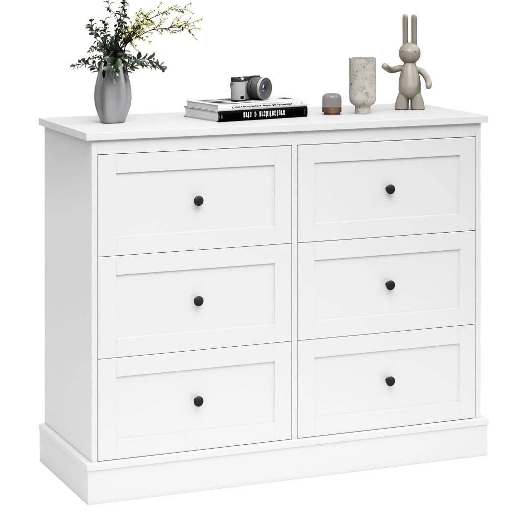 Homfa 6 Drawer Double Dresser White, Wood Storage Cabinet for Living Room, Chest of Drawers for Bedroom