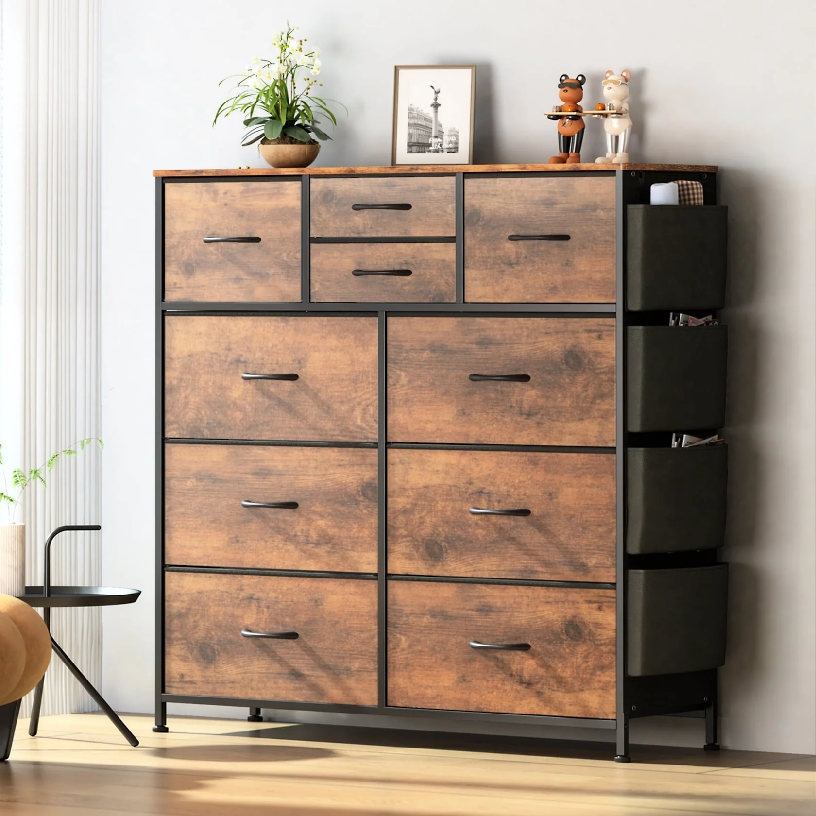 GIKPAL 10 Drawer Dresser, Chest of Drawers for Bedroom Fabric Dressers with Side Pockets and Hooks, Brown