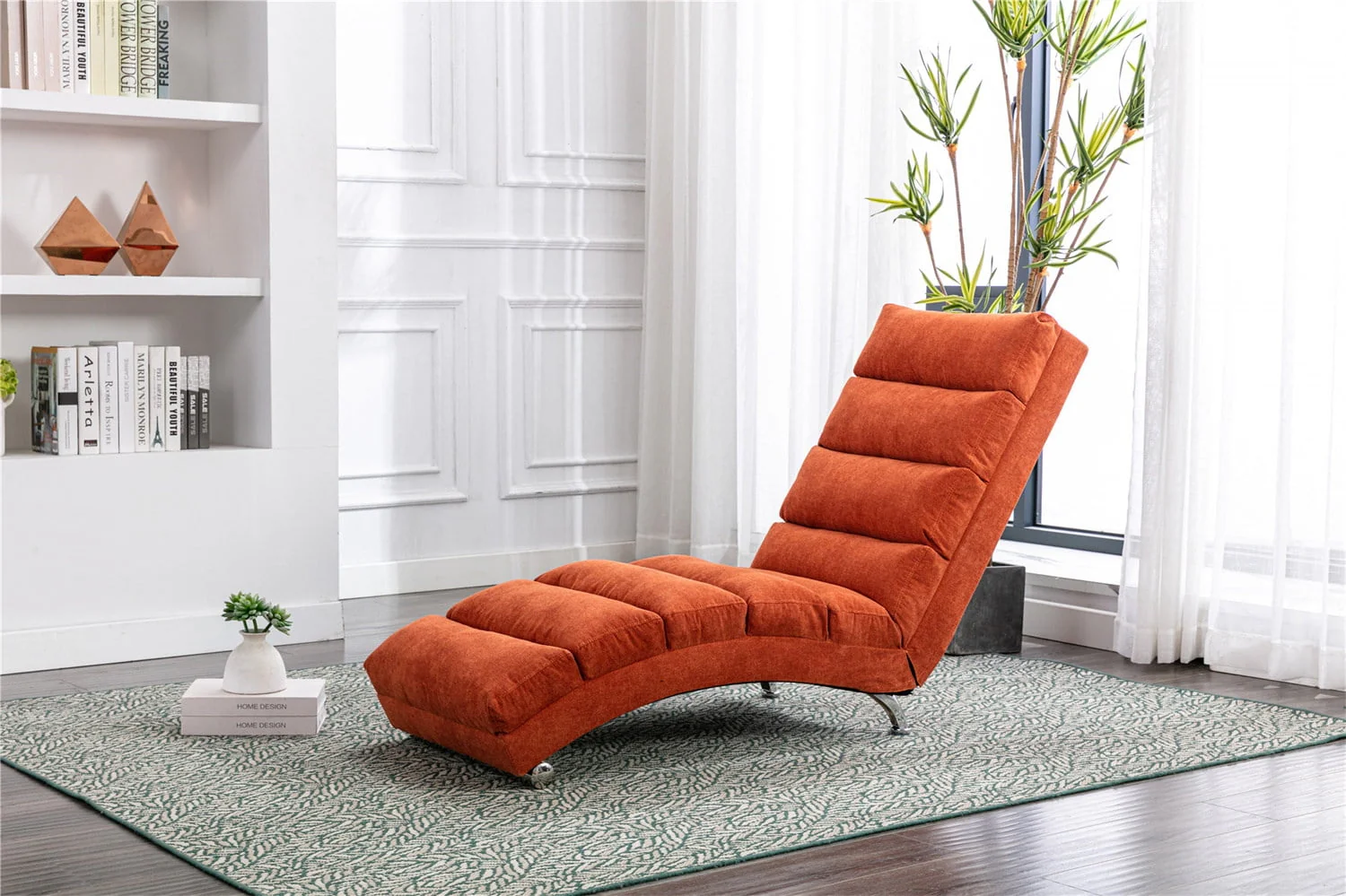 GDF Studio Sophia Mid Century Modern Fabric One Armed Chaise Lounge, Muted Orange and Walnut