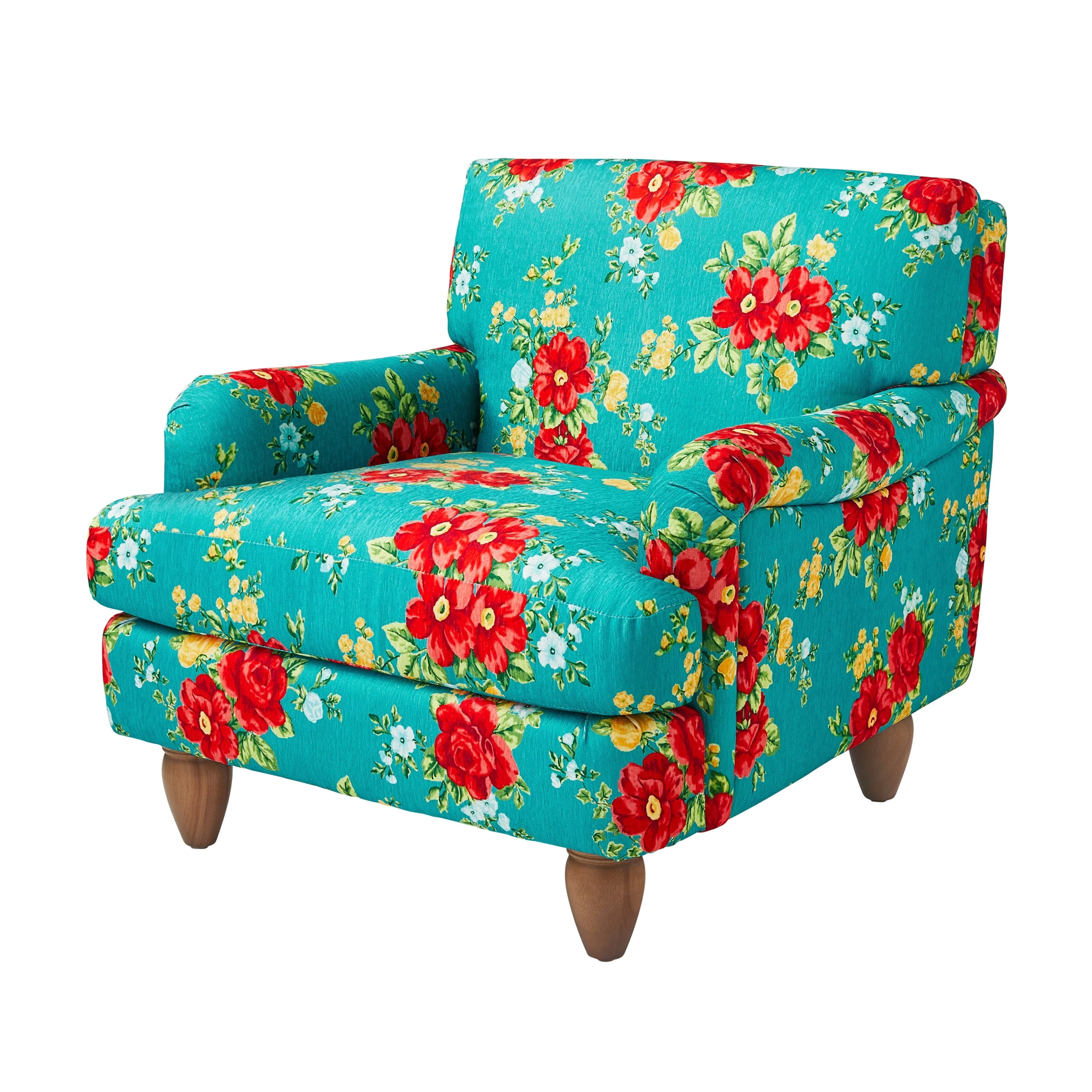 The Pioneer Woman Vintage Floral Low Back Fabric Accent Chair, Teal