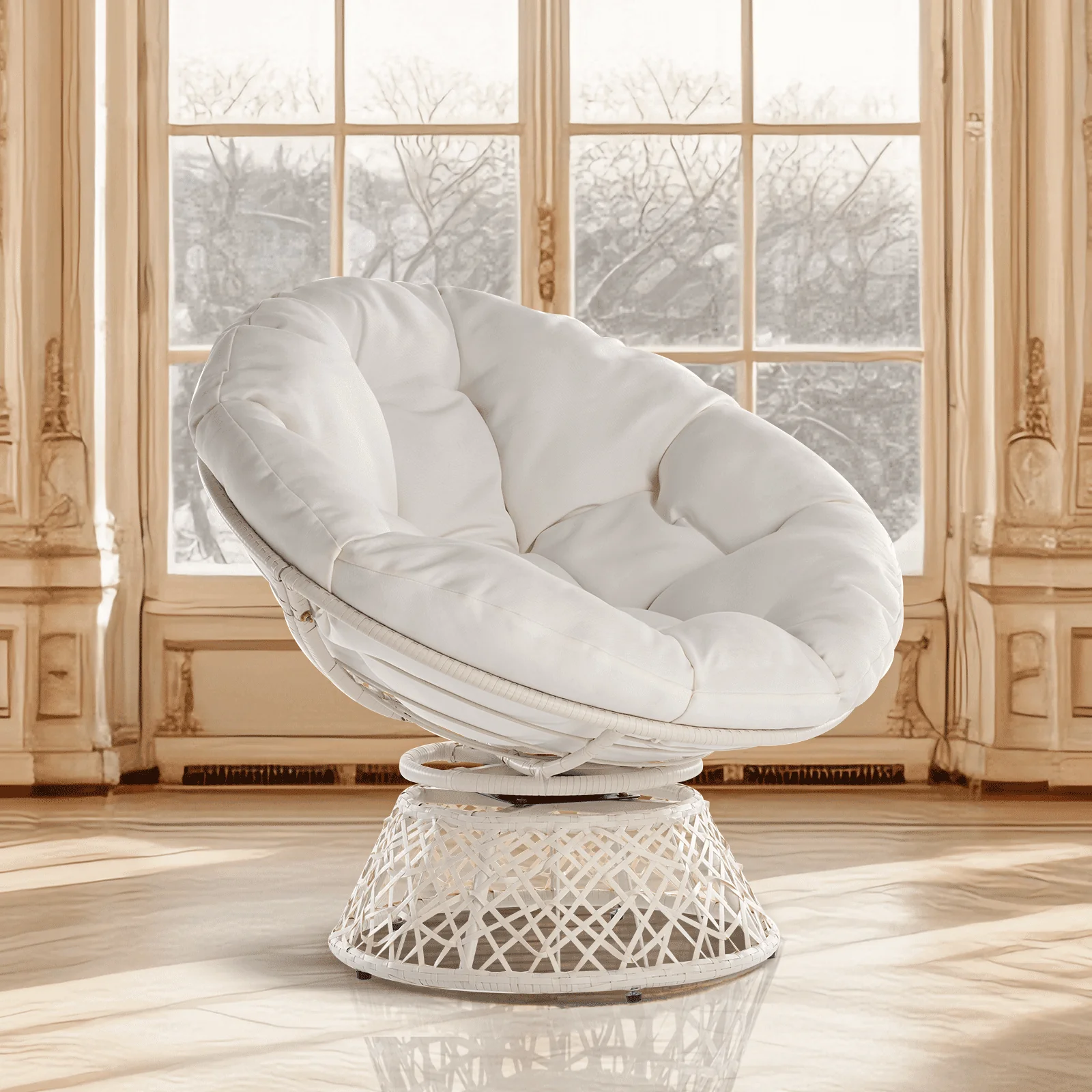 Aile 360 Swivel Comfy Papasan Chair with Fabric Cushion, Sturdy Metal Frame (Pure Pearl - White Frame)