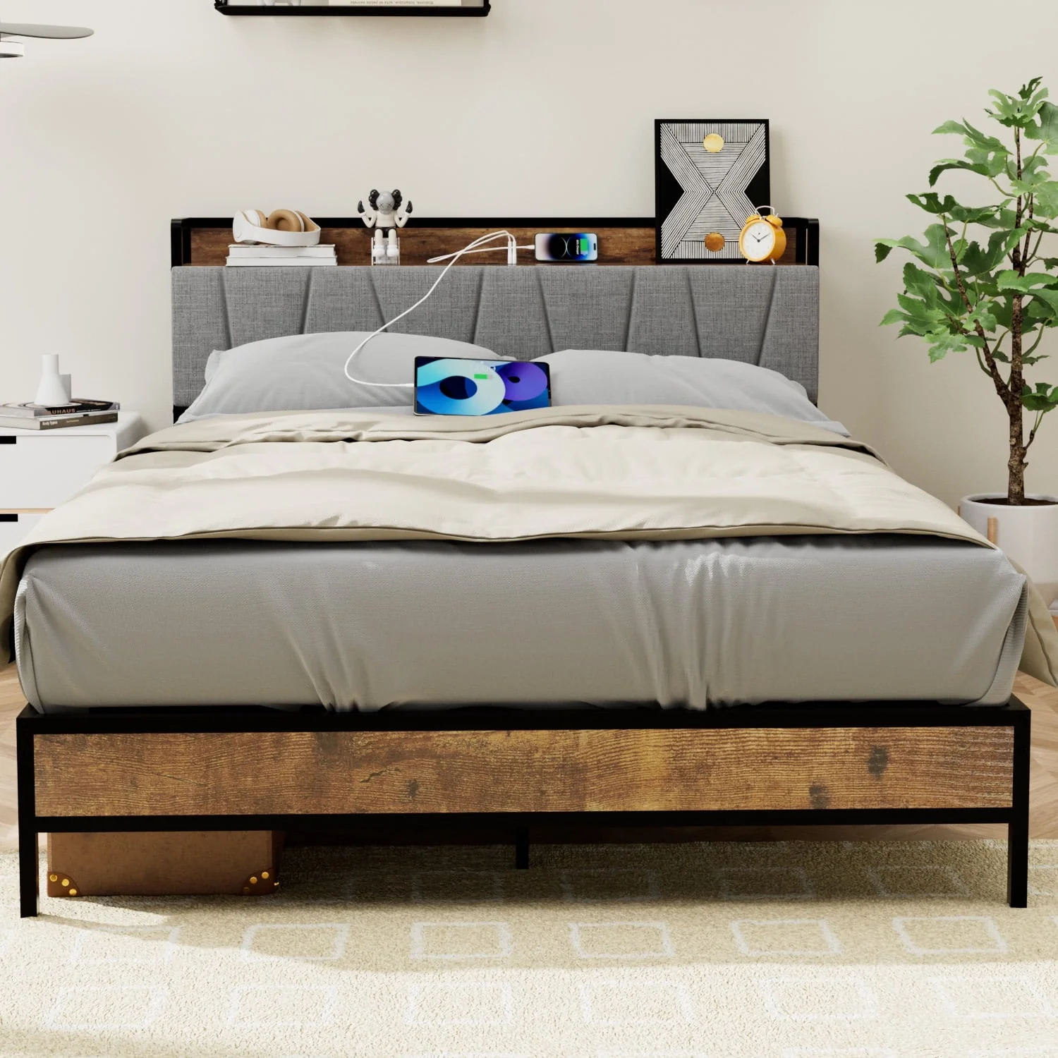 Behost Platform Bed Frame, Full Size Bed Frame with Headboard and Storage