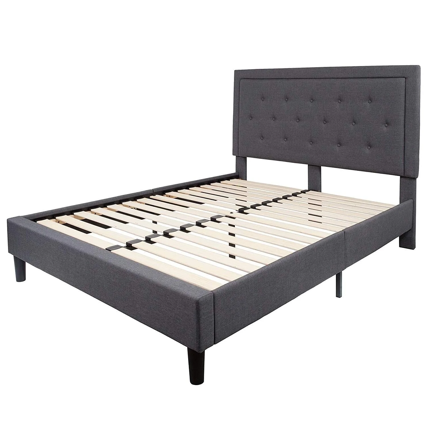Queen size Dark Gray Fabric Upholstered Platform Bed Frame with Headboard