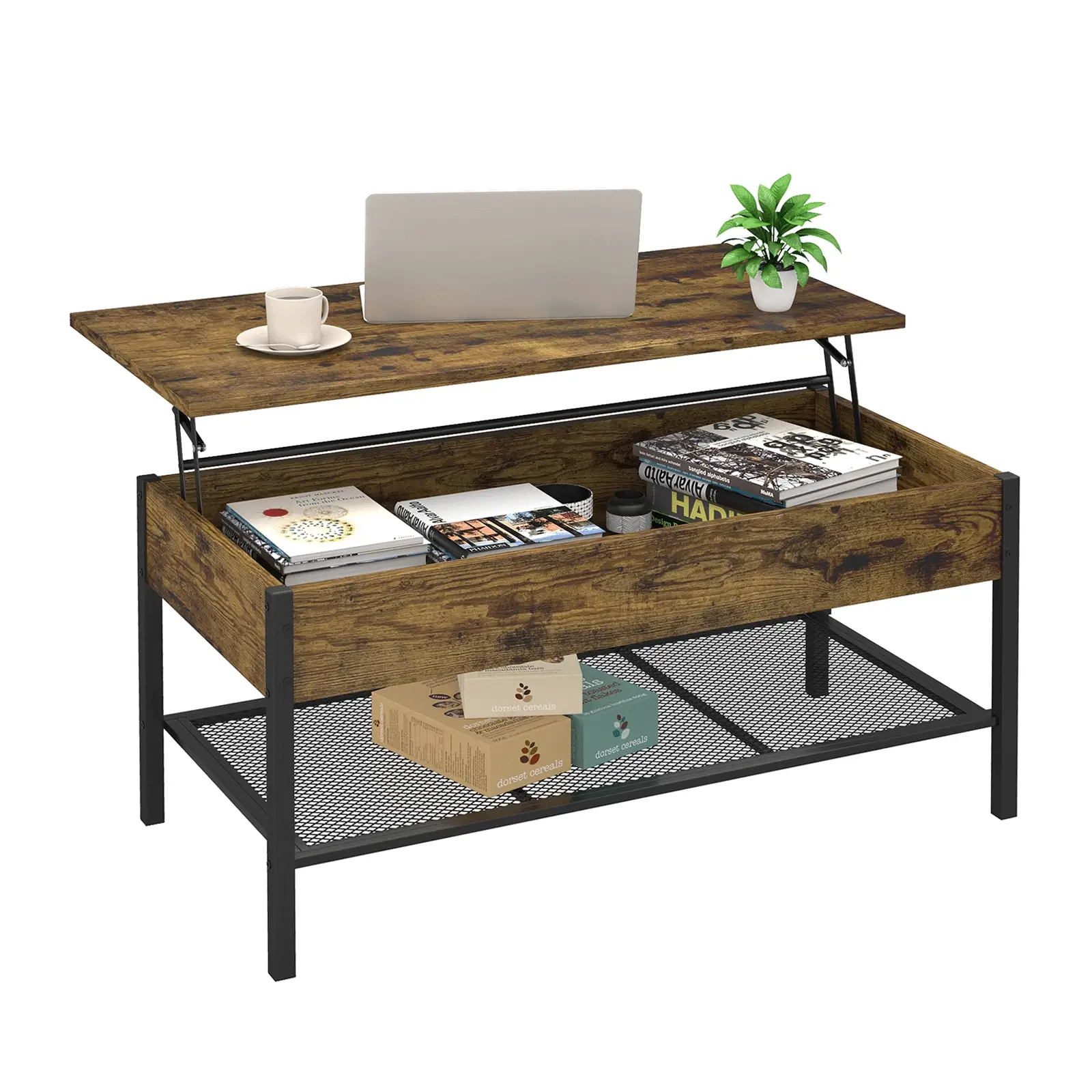 Private Jungle Modern Modern Lifting Coffee Table with Hidden Storage, Flip Top Coffee Table, Wooden Lifting Table, Retro Center Table for Living Room, Brown