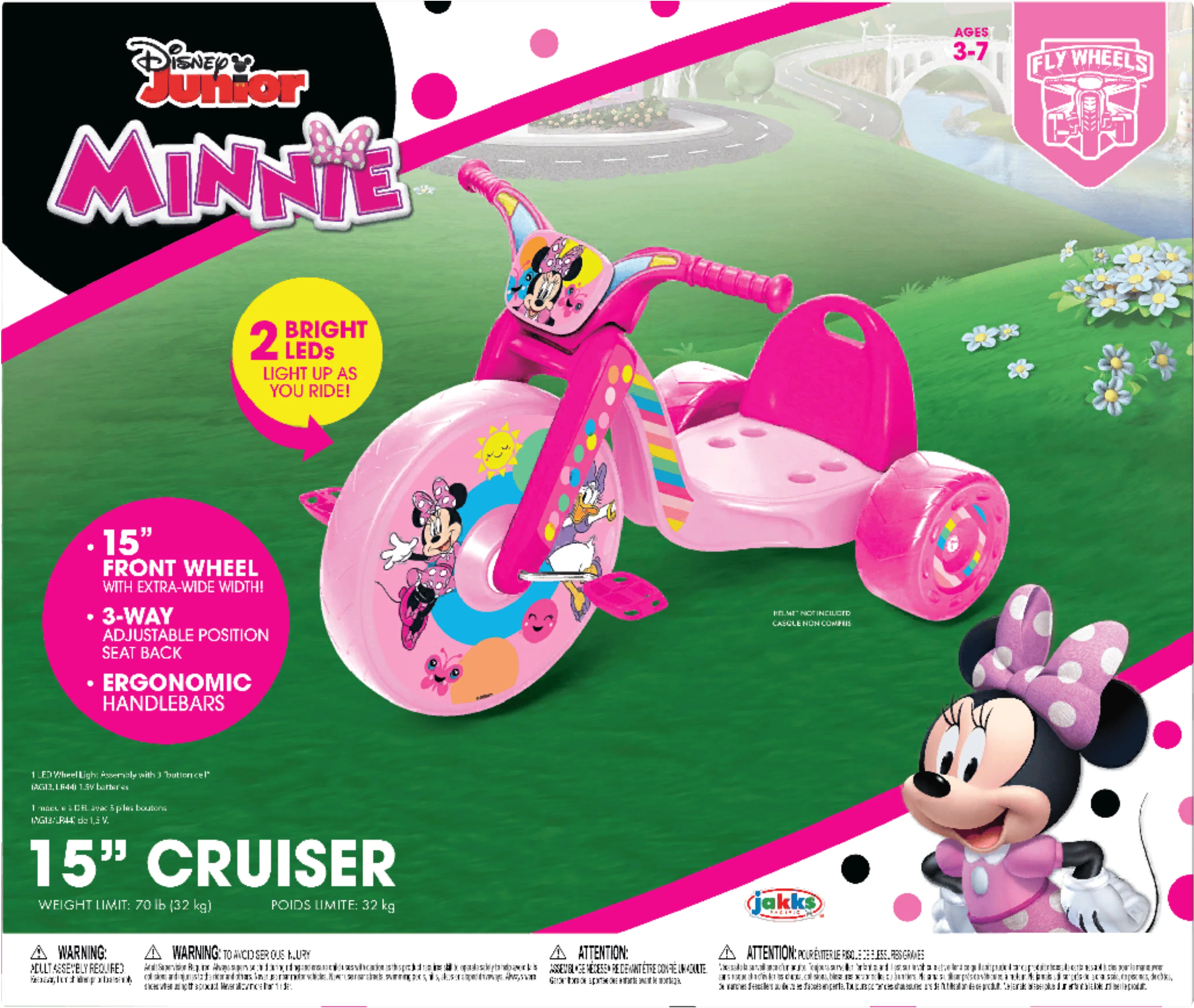 Disney Minnie Mouse 15 inch Fly Wheels Cruiser Ride on Trike with Light on Big Wheel