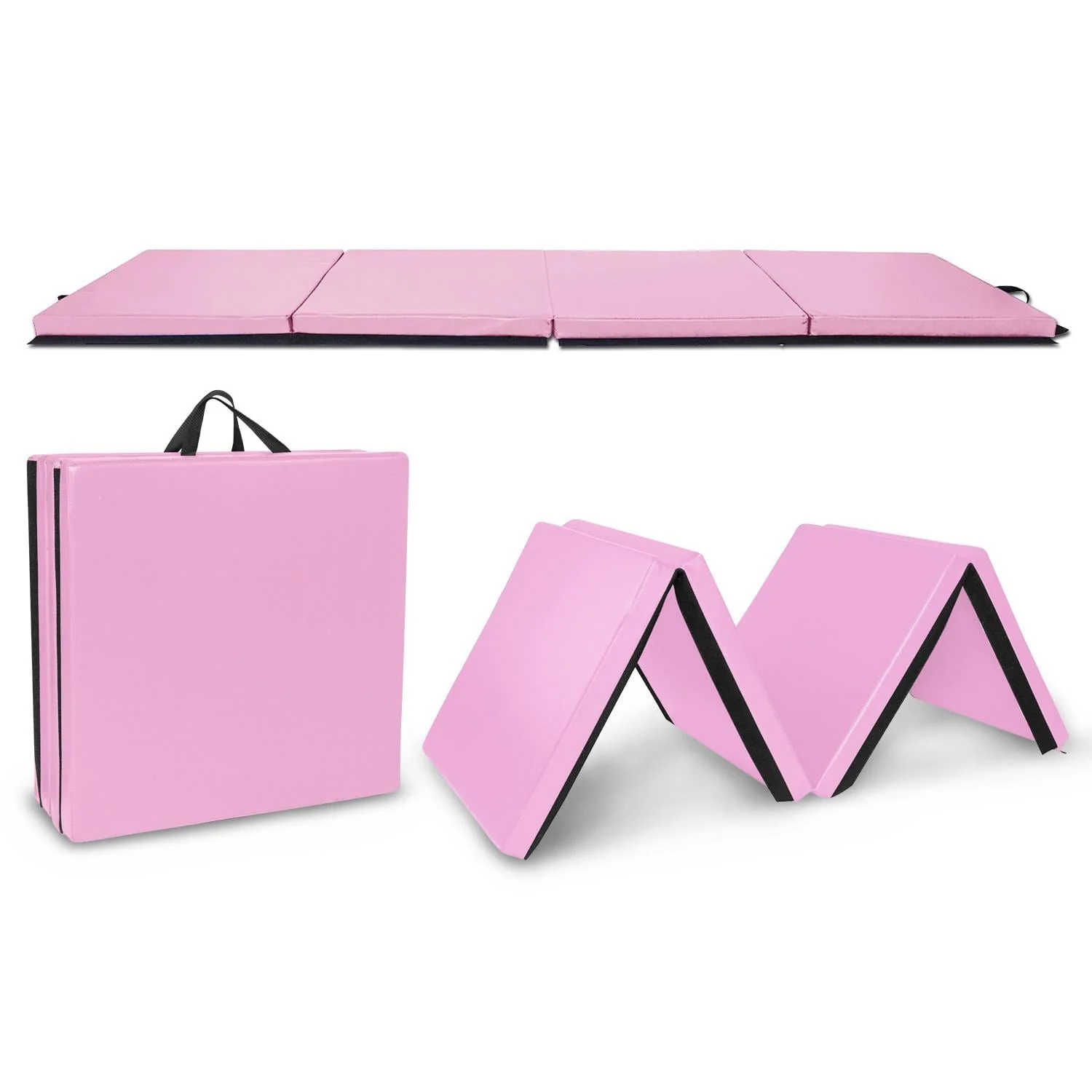 Folding Gymnastics Tumbling Mat, Extra Thick Mat with Carry Handles, for Exercise, Yoga, Fitness, Aerobics, Cardio, Pink