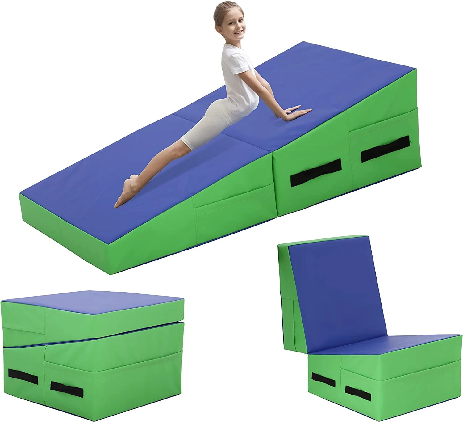 YRLLENSDAN 48x24 inch Large Incline Gymnastics Mat, Foldable Tumbling Mat for Gymnastics for Home Foam Incline Mat with Handle Gym Yoga Exercise Mat Indoor/Outdoor Incline Cheese Wedge