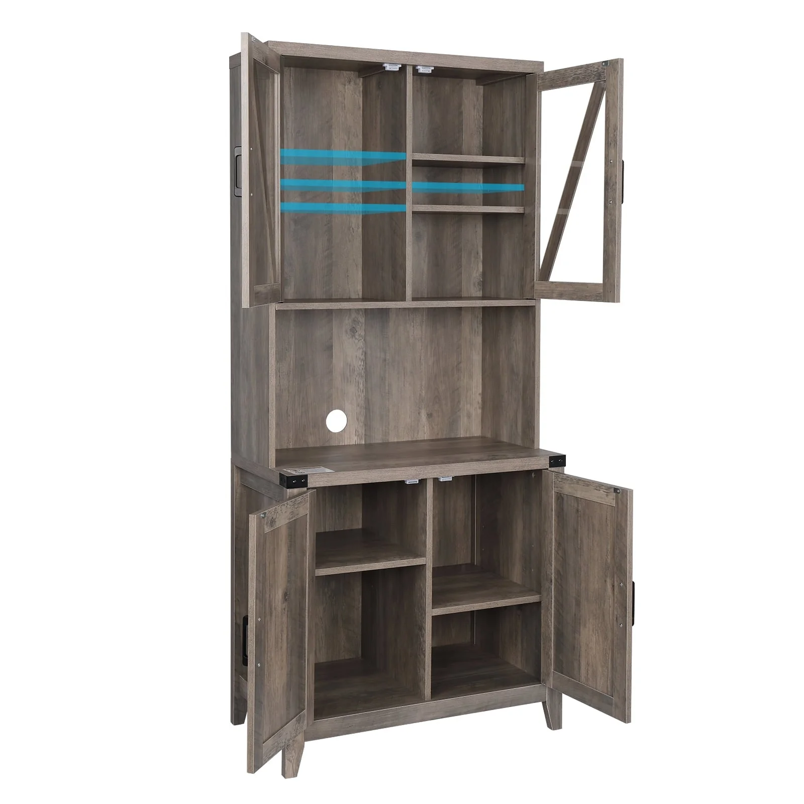 Freestanding Rustic Kitchen Buffet with Hutch, Pantry Storage Cabinet with Adjustable Shelf Grey Oak