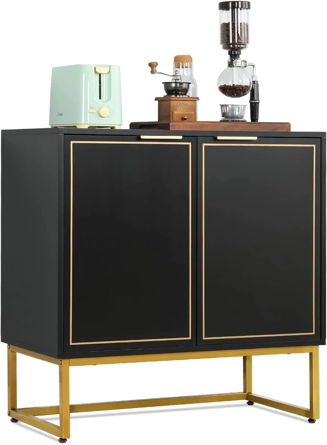 Yoleny 31'' Buffet Cabinet with Storage, Accent Cabinet with 2 Doors, Gold Trim and Golden Legs, Wooden Sideboard with Adjustable Shelf and Feet for Bedroom, Living Room, Kitchen, Hallway, Black