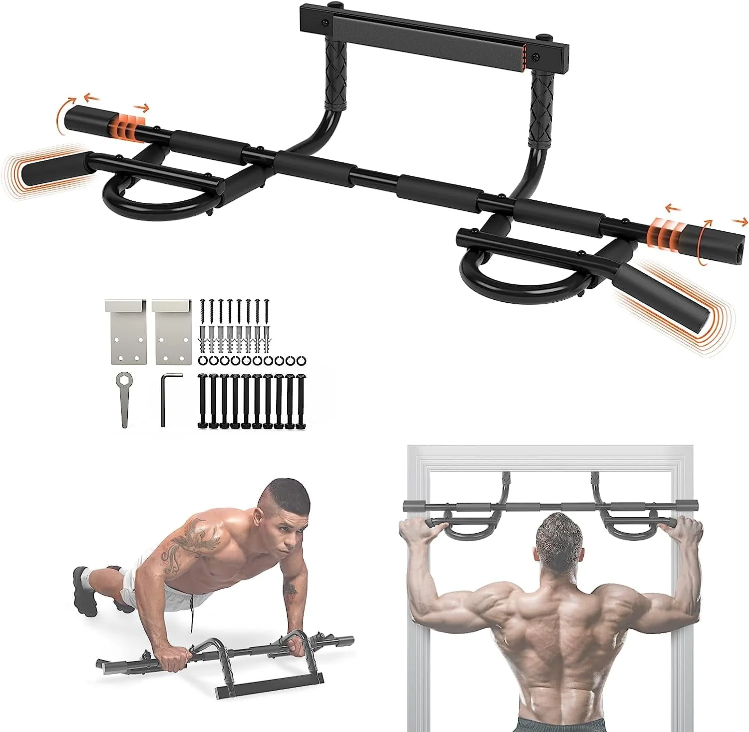 Strength Training Pull-up Bars without Screw, Adjustable Width & Max Load 440lbs for Home Gym Upper Body Workout
