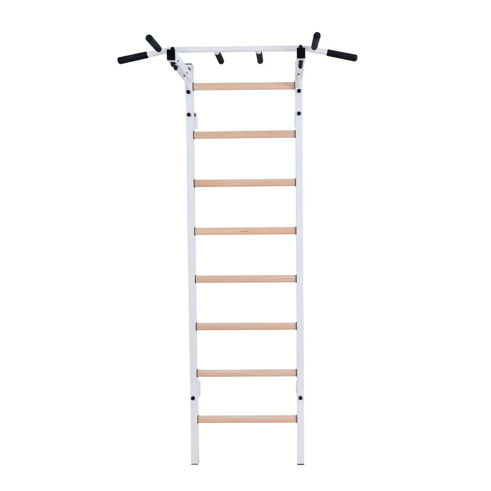 BenchK 711 White wall bars with adjustable solid beech wood pull-up bar
